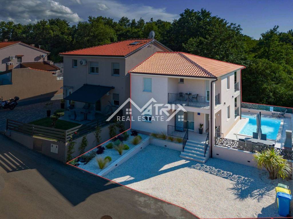 Na prodaju je prekrasna dvojna kuća s bazenom u mirnom naselju. Kuća ima 140 m2 prostora.