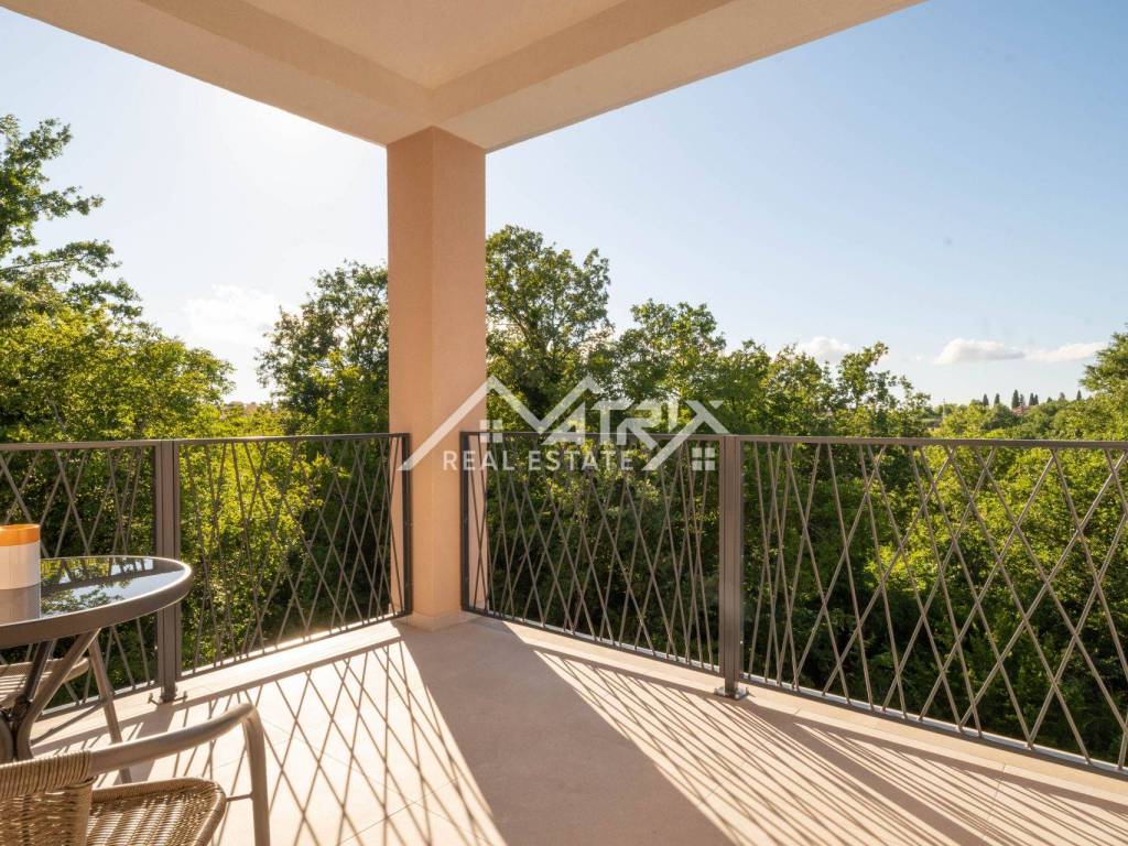 Na katu se nalaze tri spavaće sobe, svaka s vlastitim kupatilom, a dvije sobe imaju privatnu terasu s pogledom na prirodu.