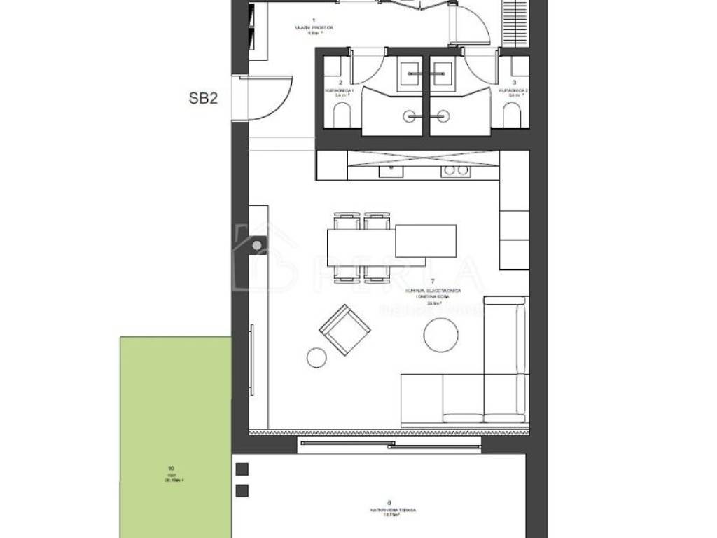 B2 - prizemlje, dvosoban apartman s vrtom - 427.500,00 €
