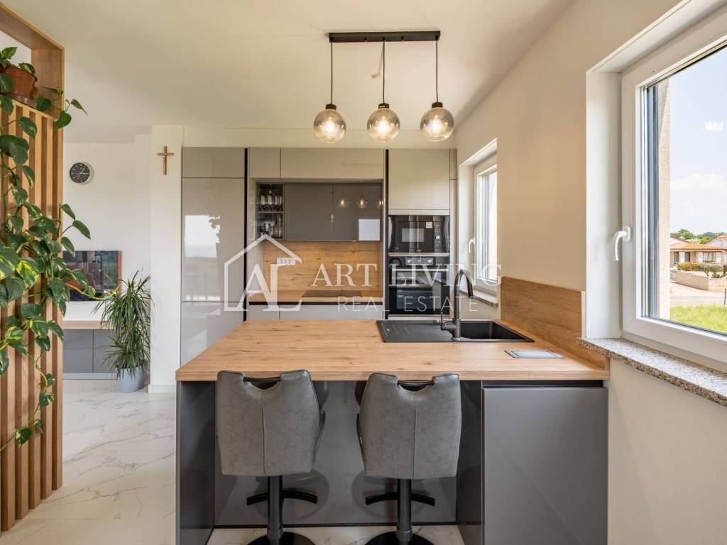 Stan je u potpunosti namješten modernim i stilskim namještajem, u potpunosti je funkcionalan te se kao takav i prodaje. Podno grijanje osigurava apsolutnu toplinu i komfor tijekom zimskih mjeseci dok je hlađenje osigurano inverter klima uređajem.