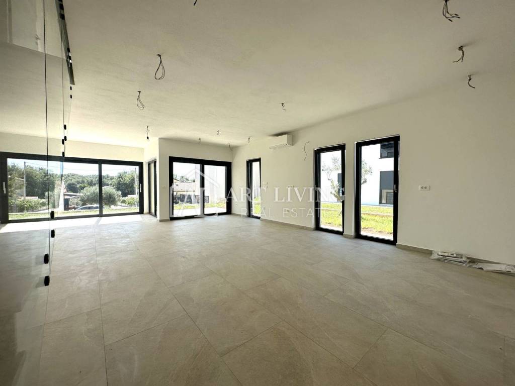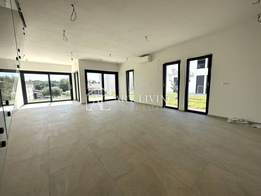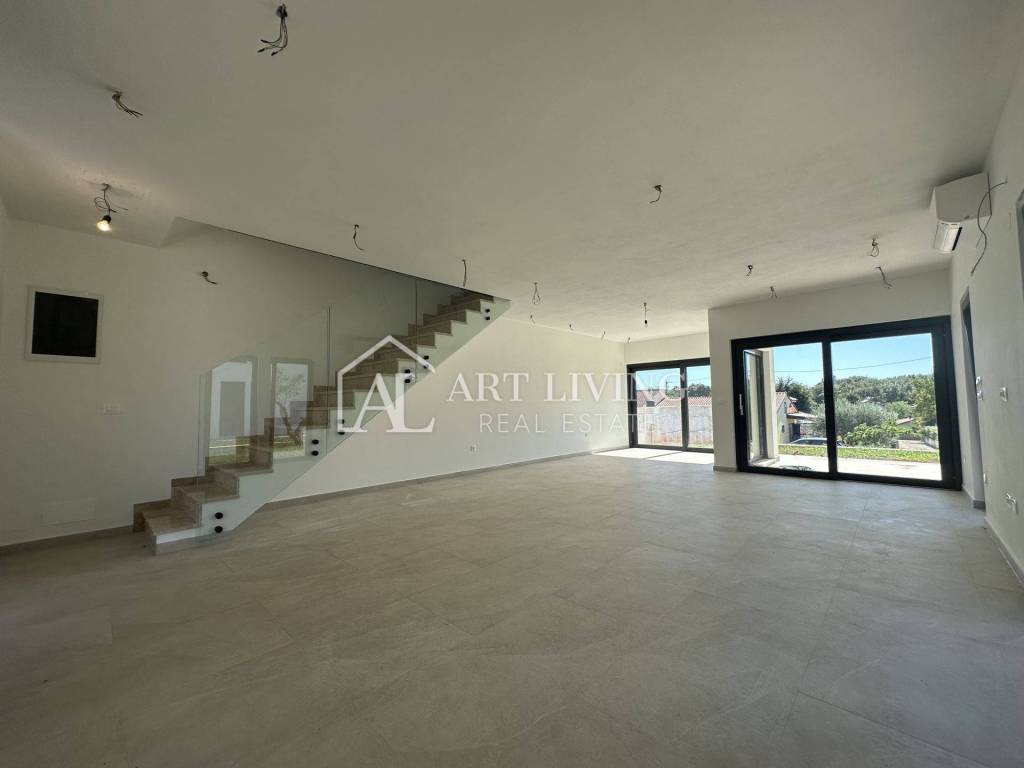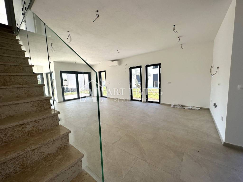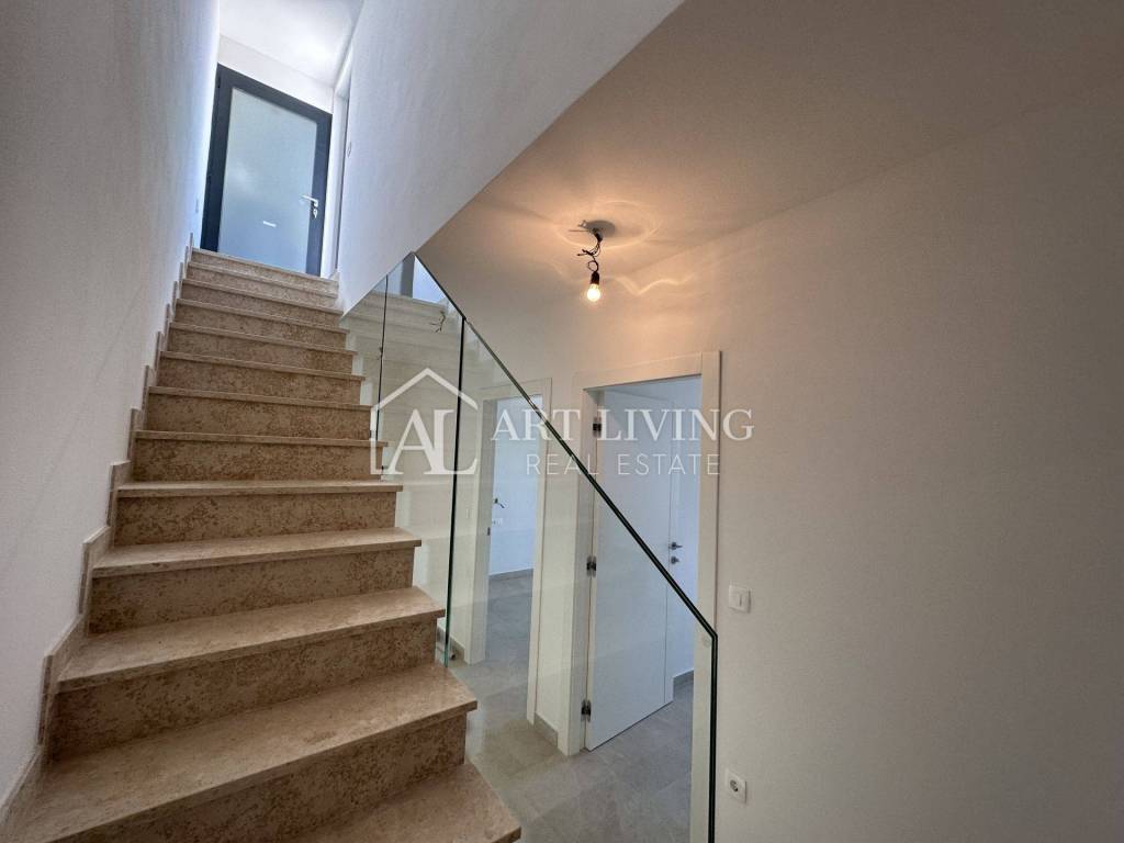 U prizemlju se nalazi wc i open space prostor u kojem su smješteni kuhinja s blagovaonicom i dnevni boravak s izlazom na terasu i vrt od cca 220 m2. Na 1. katu se nalazi 3 spavaće sobe od kojih dvije spavaće koriste zajedničko kupatilo, dok 3 spavaća soba ima privatno kupatilo i terasu.