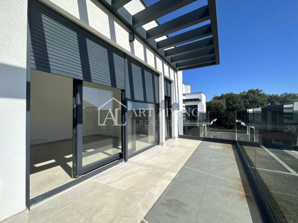 Na atraktivnoj i mirnoj lokaciji u neposrednoj blizini mora, prodaje se moderna dvojna kuća vrhunske gradnje i dizajna. Udaljena je samo 300 m od mora i 500 m od uređene plaže, te svega nekoliko minuta vožnje od centra Novigrada.
