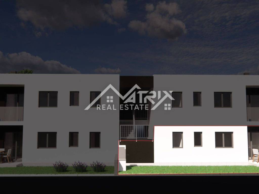 Na prodaju je predivan stan u ekskluzivnoj zgradi sa samo četiri stambene jedinice. Smješten u prizemlju, ovaj prostrani stan površine 67 m² nudi savršen spoj udobnosti i praktičnosti. Uživajte u vlastitoj okućnici veličine cca 200 m² koja pruža idealan prostor za opuštanje na otvorenom, vrtlarenje ili igru s djecom.