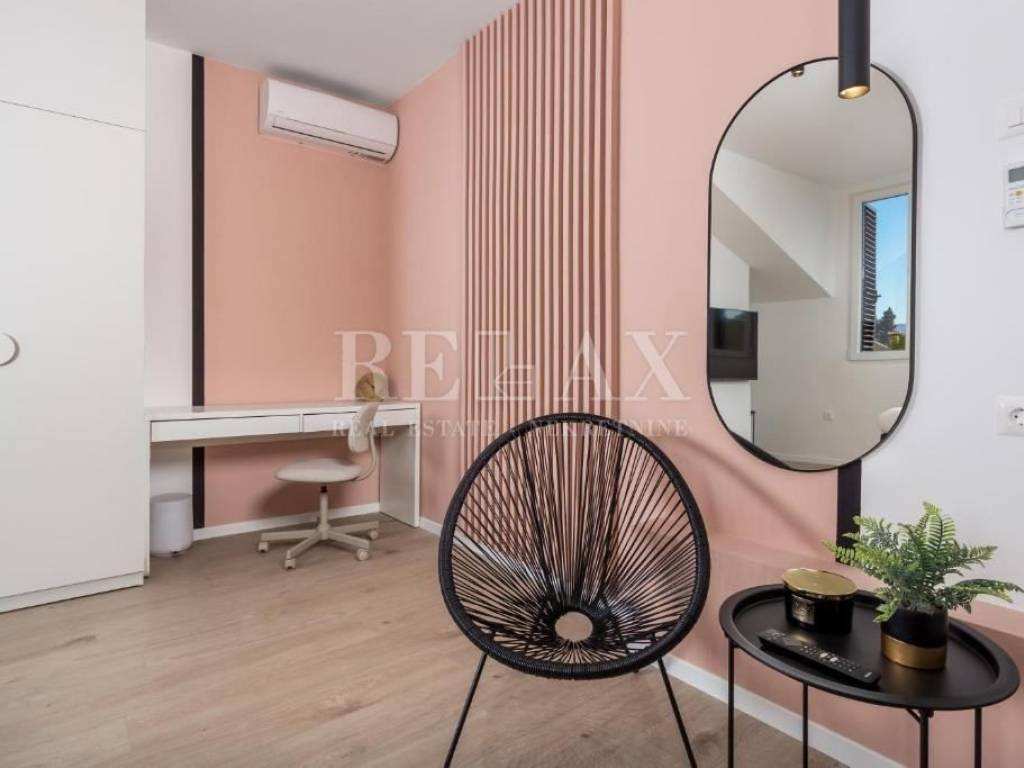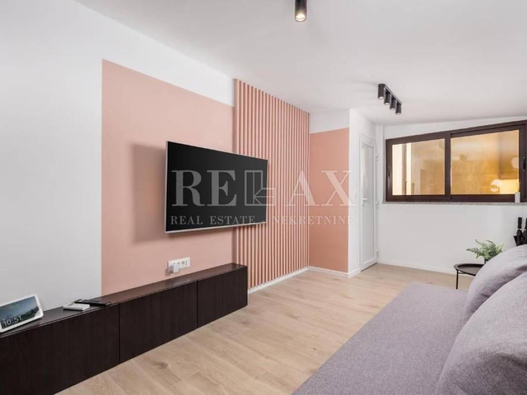 Stan se sastoji od prostranog dnevnog boravka, dvije spavaće sobe, moderno uređene kupaonice, kuhinje i hodnika. Renovacija je provedena prije tri godine, s pažnjom na detalje i funkcionalnost prostora.