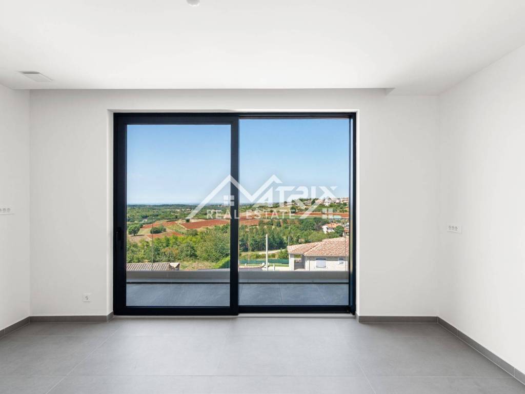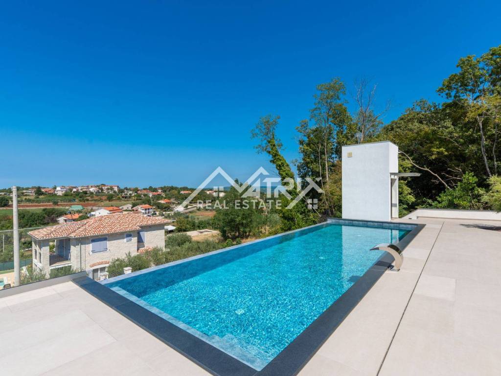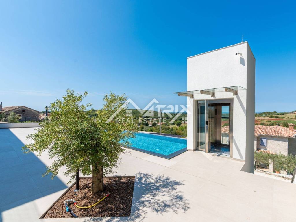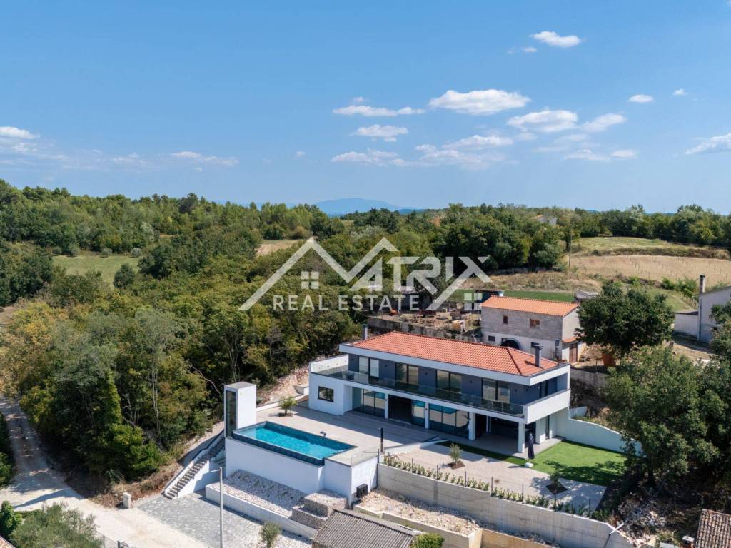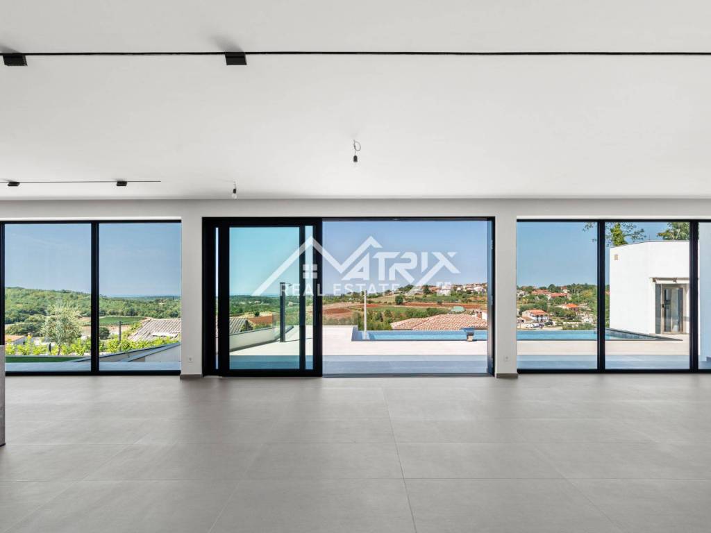 Ova jedinstvena vila doista je jedinstvena, s prekrasnim otvorenim pogledom na slikoviti istarski krajolik i pjenušavo more. Izgrađena na brežuljku u mirnom istarskom selu udaljenom samo 19 km od obale, ova nekretnina pruža savršenu kombinaciju osame i blizine plaže.