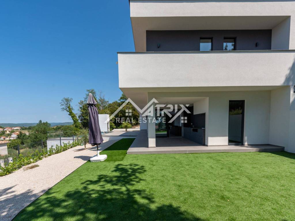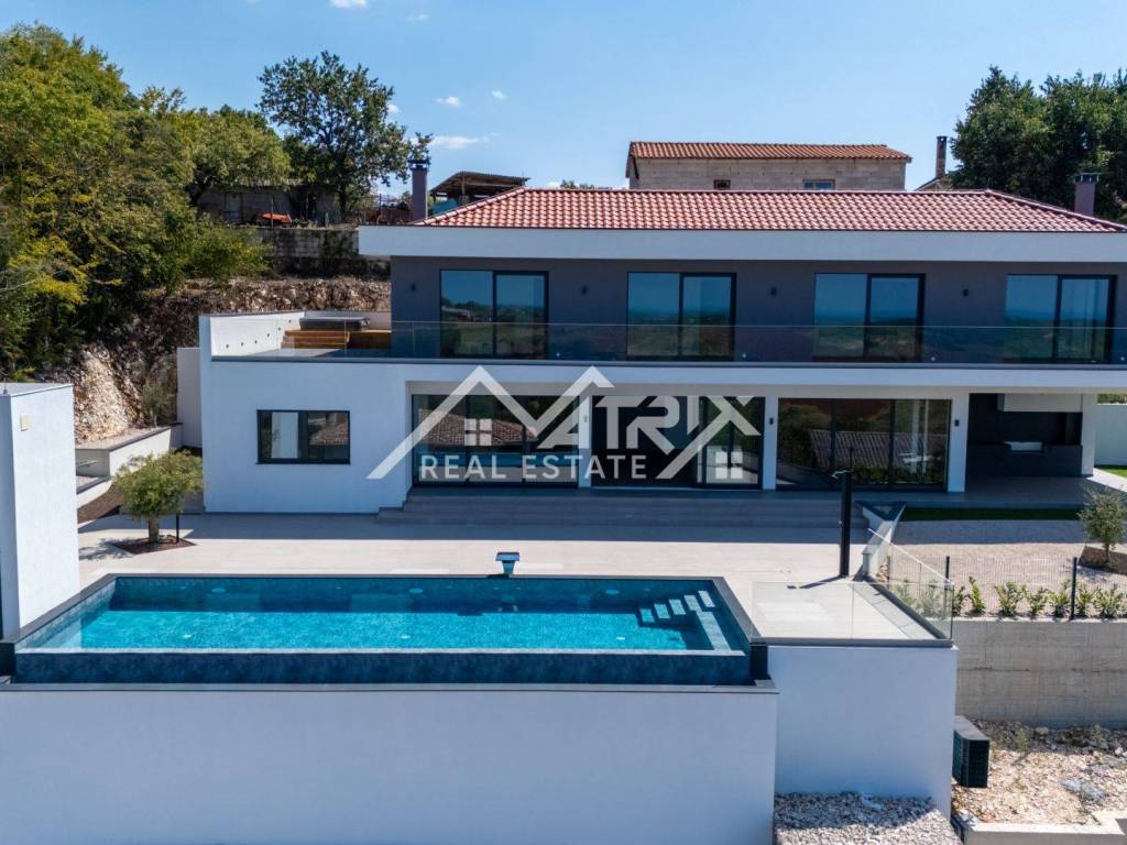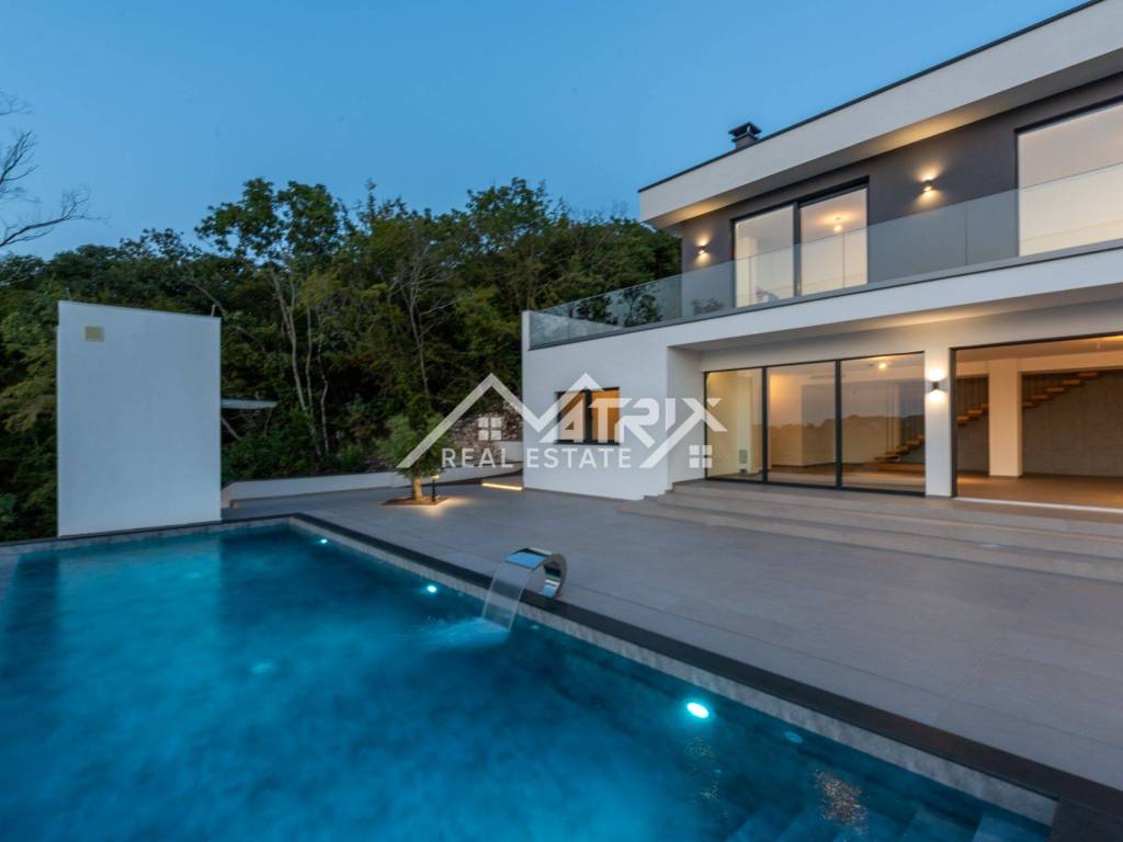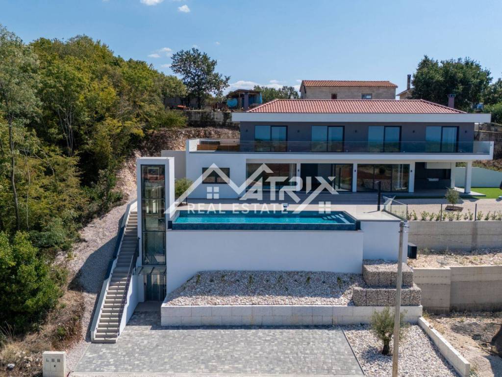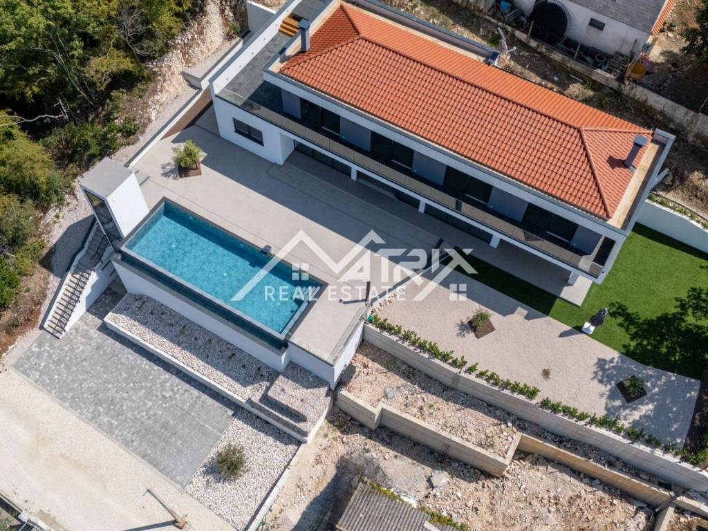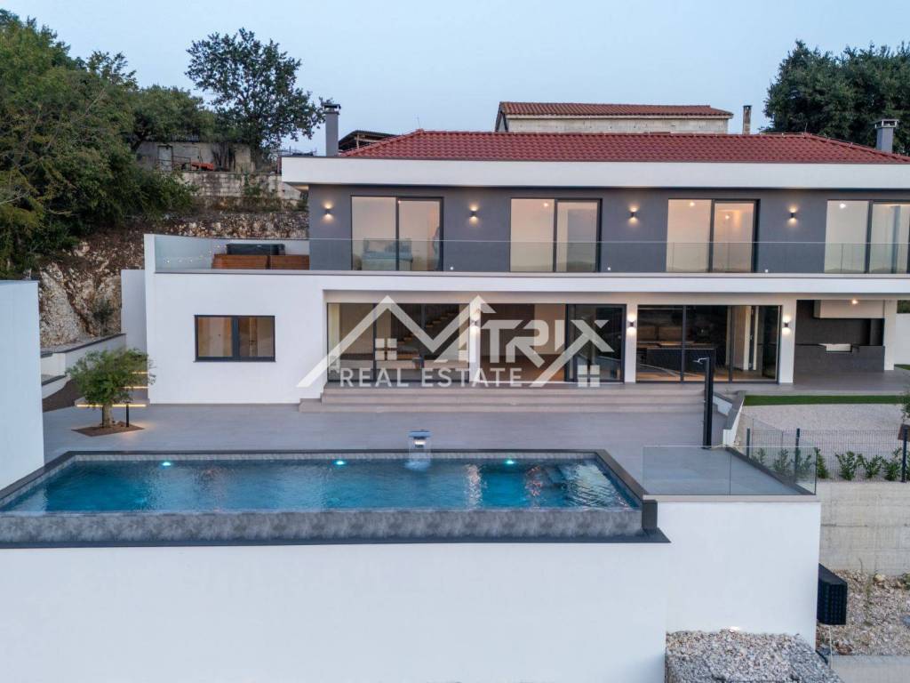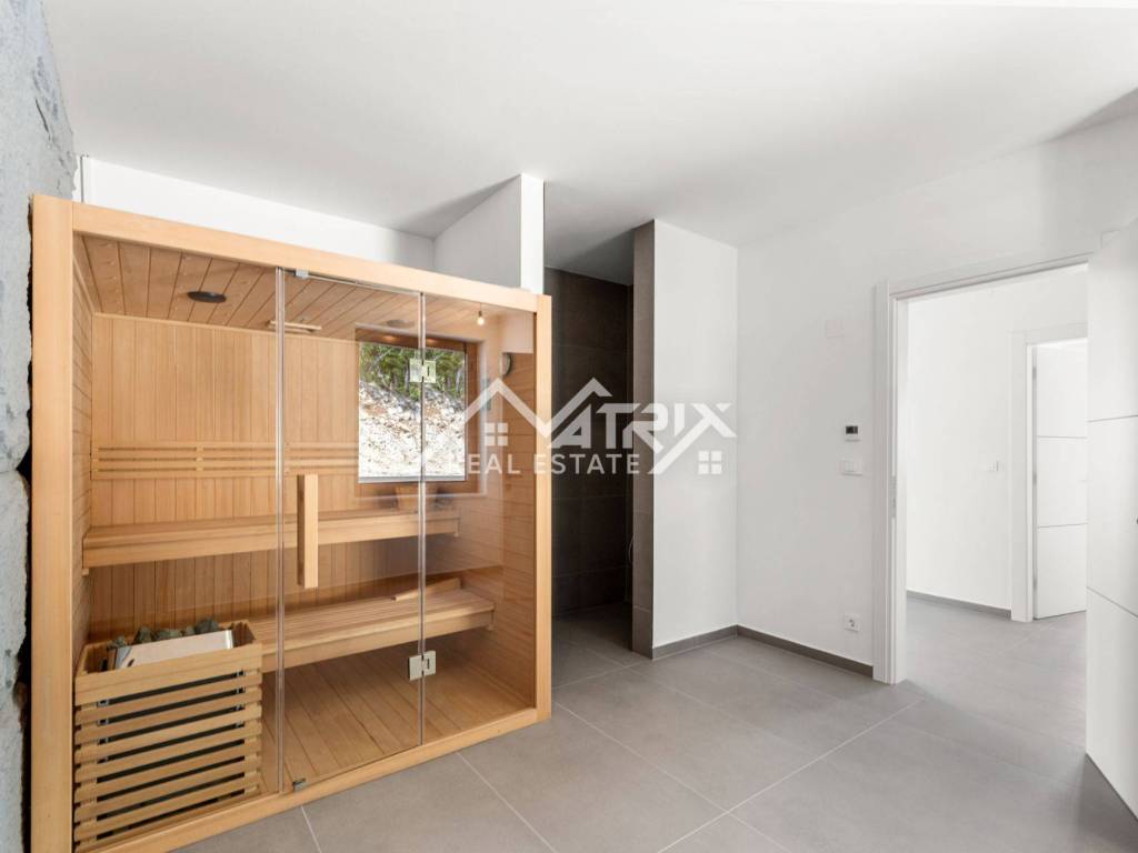 S 400 četvornih metara stambenog prostora, ova vila dizajnirana je s luksuzom i udobnošću na umu. Dnevni boravak, kuhinja i blagovaonica otvorenog koncepta savršeni su za zabavu gostiju i uživanje u prekrasnom pogledu. Četiri spavaće sobe, svaka s vlastitom kupaonicom, pružaju dovoljno prostora za obitelj i prijatelje. WC za goste i teretana, sauna i jacuzzi te soba za bilijar zaokružuju unutarnje sadržaje.