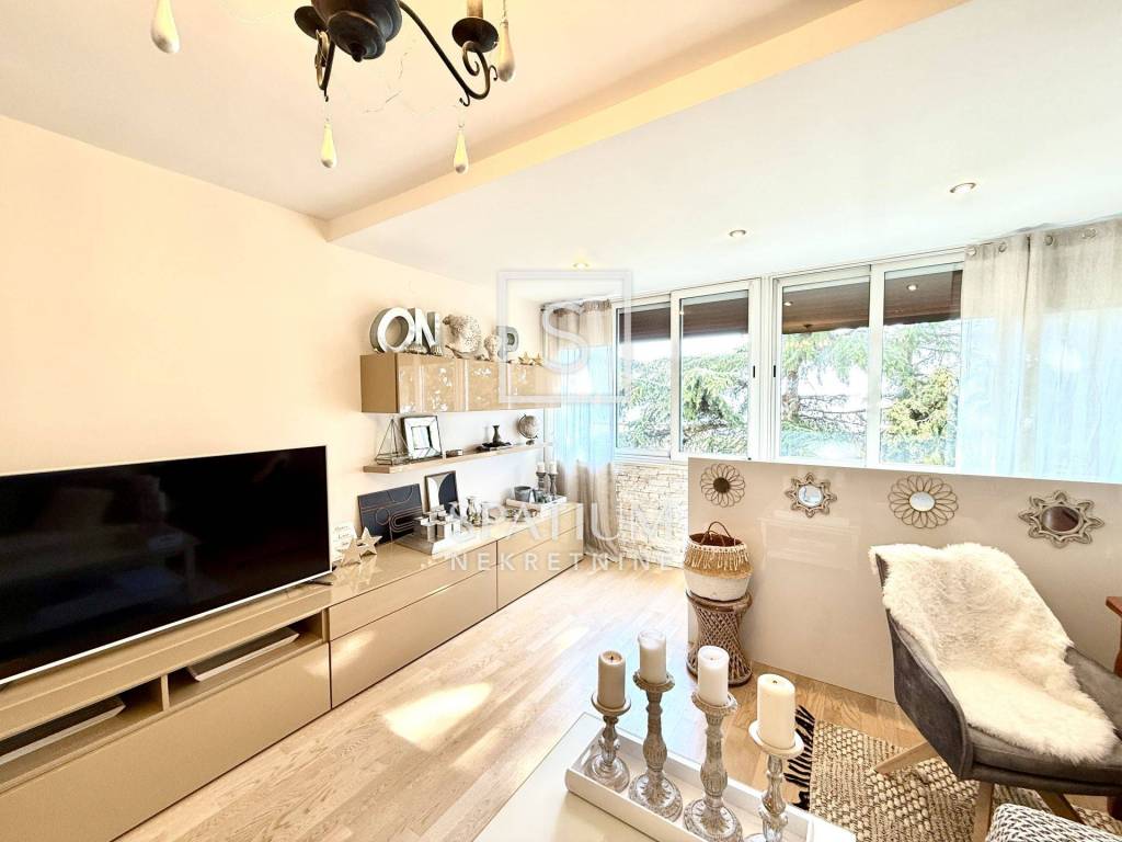 Potpuno je namješten, pažljivo uređen i dekoriran te se u takvom stanju i iznajmljuje. Zahvaljujući južnoj orijentaciji, stan je prozračan i prepun prirodnog svjetla tijekom cijelog dana. Mikrolokacija je iznimno pogodna za sve koji rade u centru grada i preferiraju život bez automobila, s obzirom na blizinu svih bitnih sadržaja – trgovina, škola, vrtića, javnog prijevoza i drugih usluga.