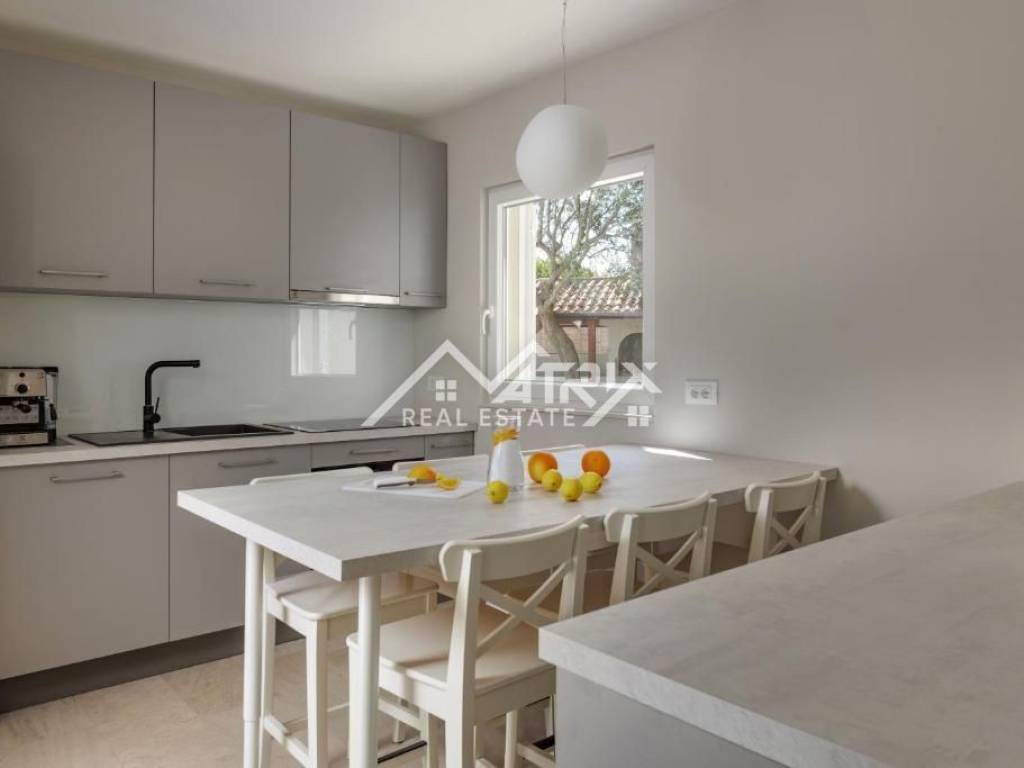 Kuća je izgrađena od visokokvalitetnih materijala modernog dizajna, potpuno je namještena i spremna za useljenje.