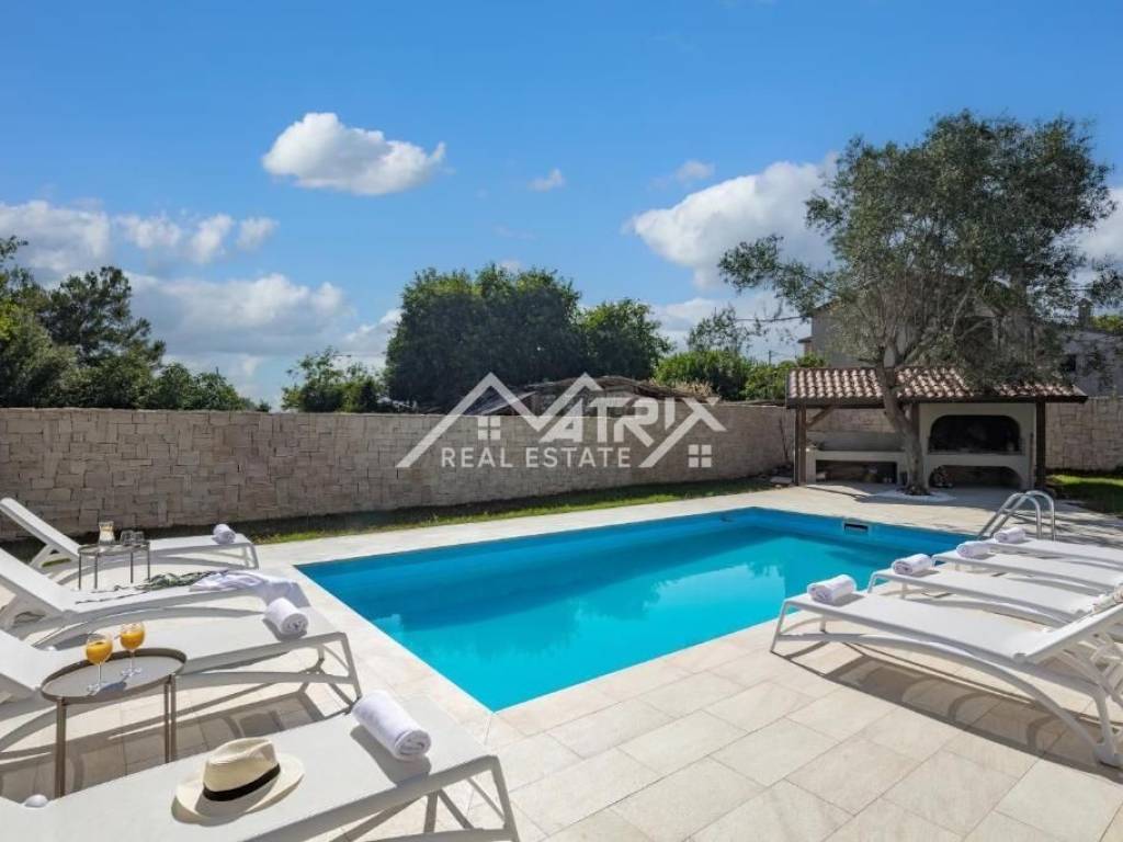 Samo nekoliko minuta vožnje od Novigrada, u mirnoj ulici, smjestila se ova prekrasna luksuzna kuća s bazenom!
