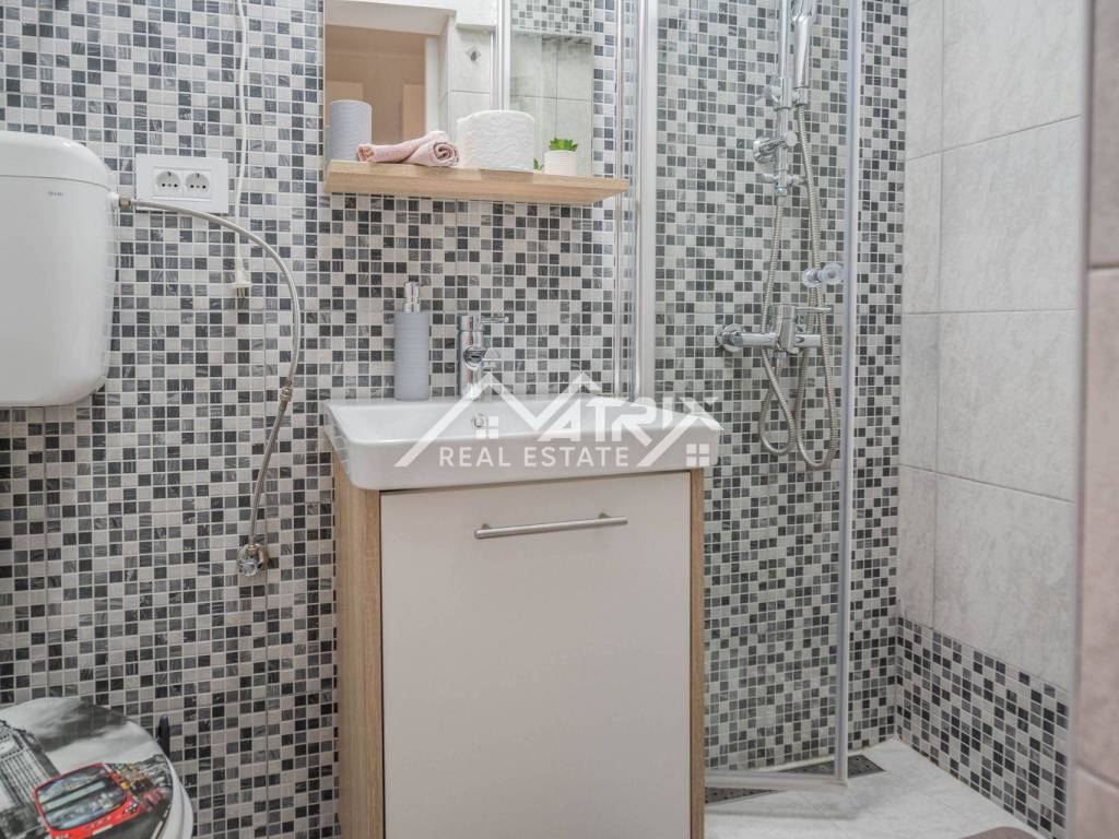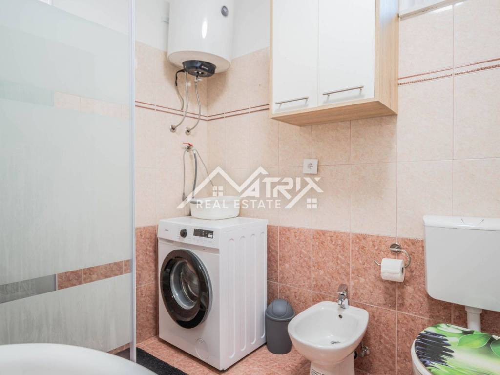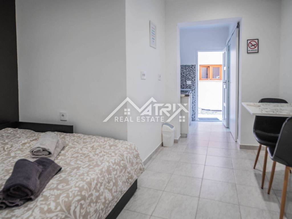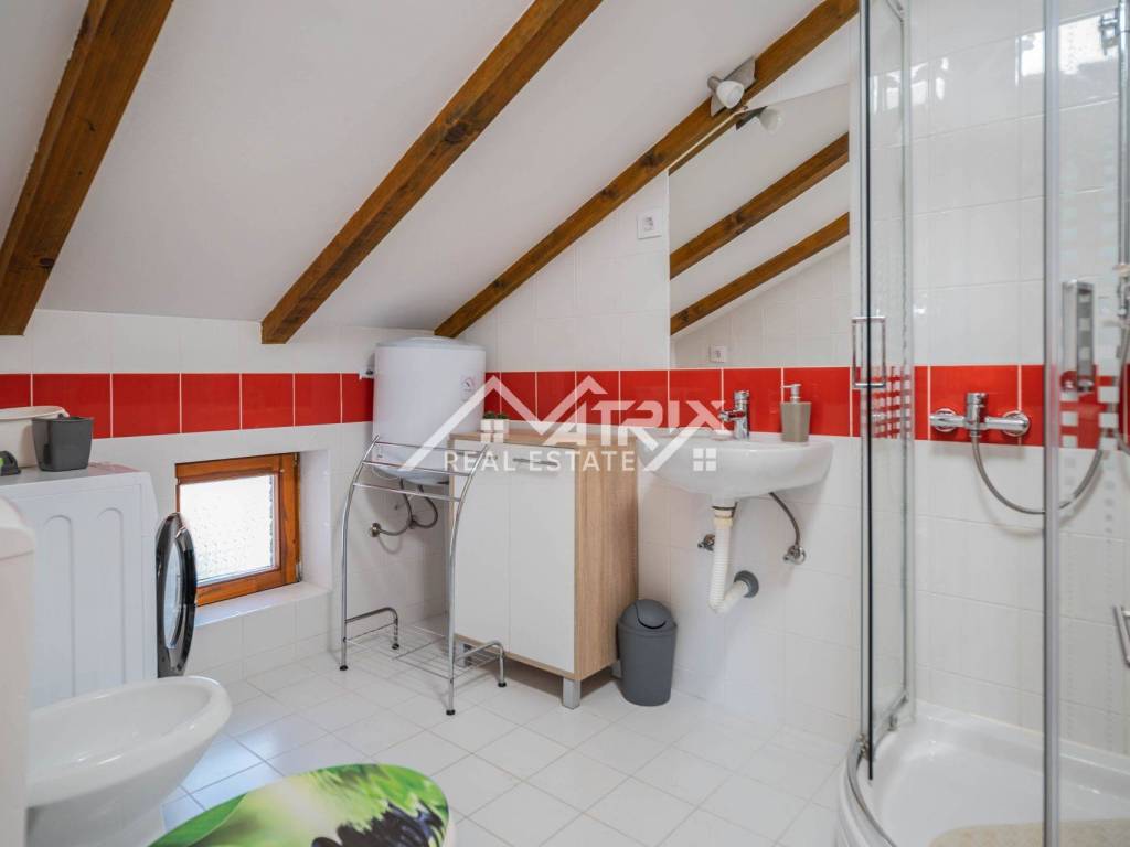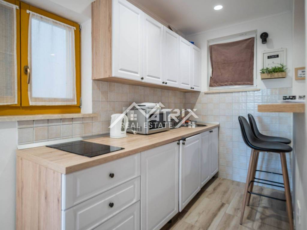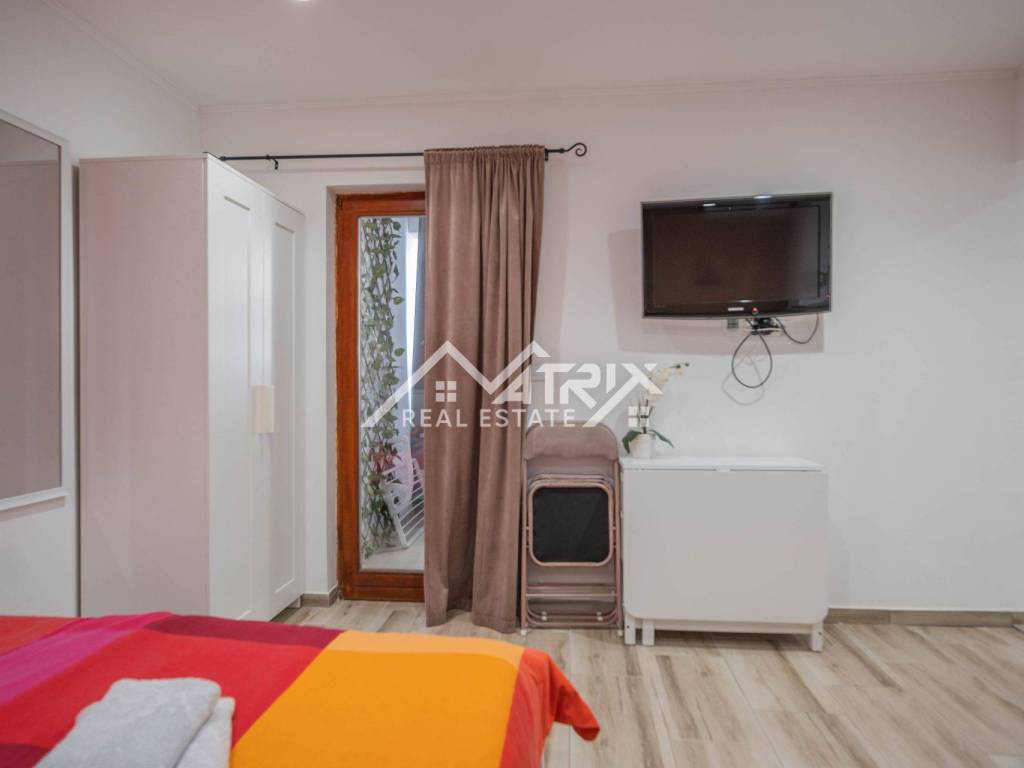 Kuća je raspoređena na dvije etaže. U prizemlju se nalaze dva moderno uređena studio apartmana, dok se na katu nalazi prostran jednosobni apartman s terasom. Svi su apartmani opremljeni klima uređajima i namještajem, te spremni za turističko iznajmljivanje ili osobno korištenje bez dodatnih ulaganja.