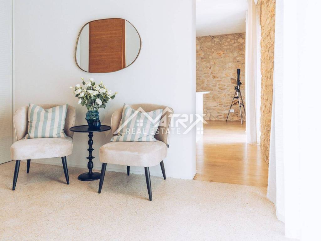 Nedavno renovirana i pažljivo uređena, ova kamena kuća očarava svojim šarmom, otkrivajući prekrasno očuvane kamene zidove koji su prožeti suvremenim arhitektonskim rješenjima. Interijer odiše modernim dizajnom, gdje se prirodni materijali sjajno stapaju s neutralnim tonovima, pružajući elegantnu atmosferu na tri etaže ukupne površine od 350 m².