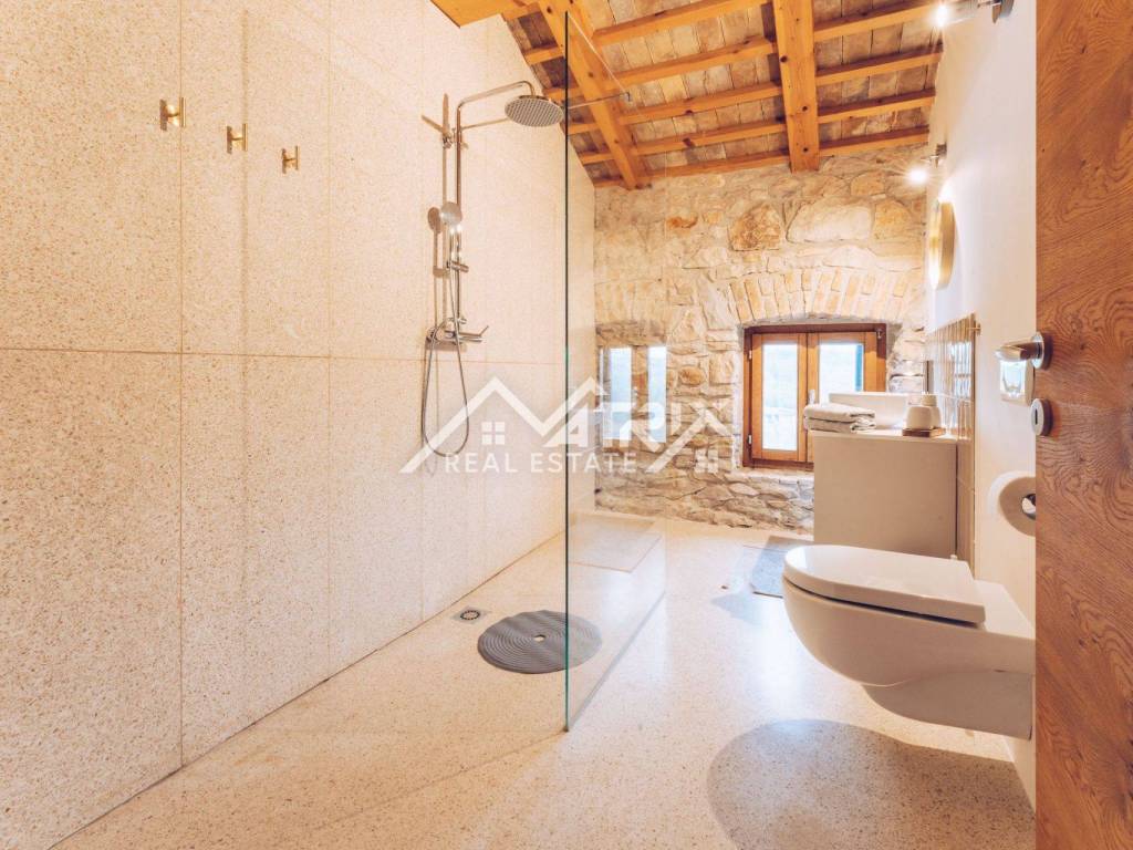 Uz sve navedene sadržaje, važno je istaknuti da ova prekrasna kamena vila nudi i podno grijanje na dizalicu topline u cijeloj kući, na svim etažama, osiguravajući ugodnu temperaturu tijekom cijele godine. Unatoč tome što datira iz 1818. godine, kuća je temeljito renovirana te je sada opremljena modernim luksuznim sadržajima.