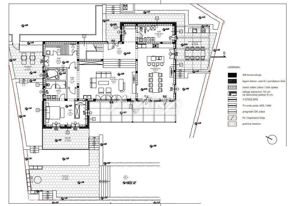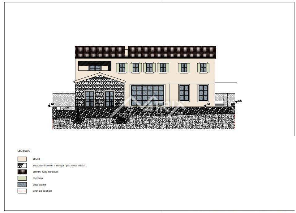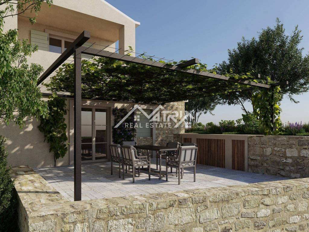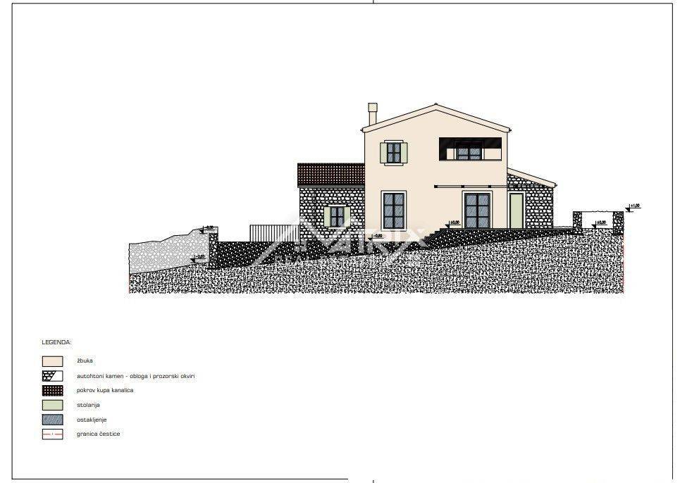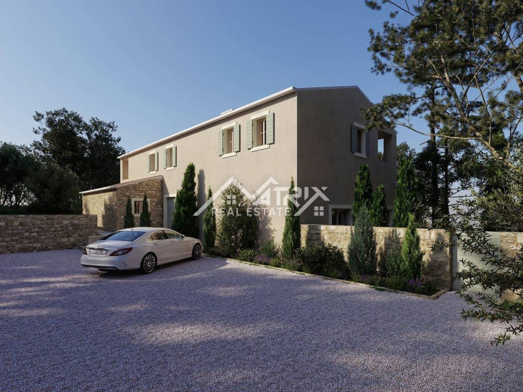 Ovaj fascinantan projekt predstavlja spoj suvremene arhitekture i autentičnih, starih kamenih temelja, stvarajući jedinstvenu atmosferu koja istovremeno odražava prošlost i sadašnjost. Smještena na idiličnoj parceli od 1010m2, ova moderna kuća savršeno je uklopljena u svoje okruženje, s ruševinama kamenih zgrada koje su pažljivo integrirane u funkcionalne dijelove doma.