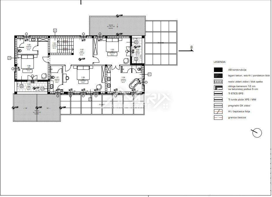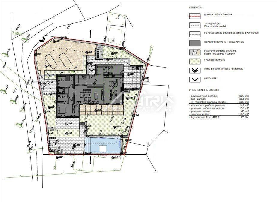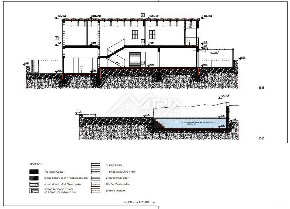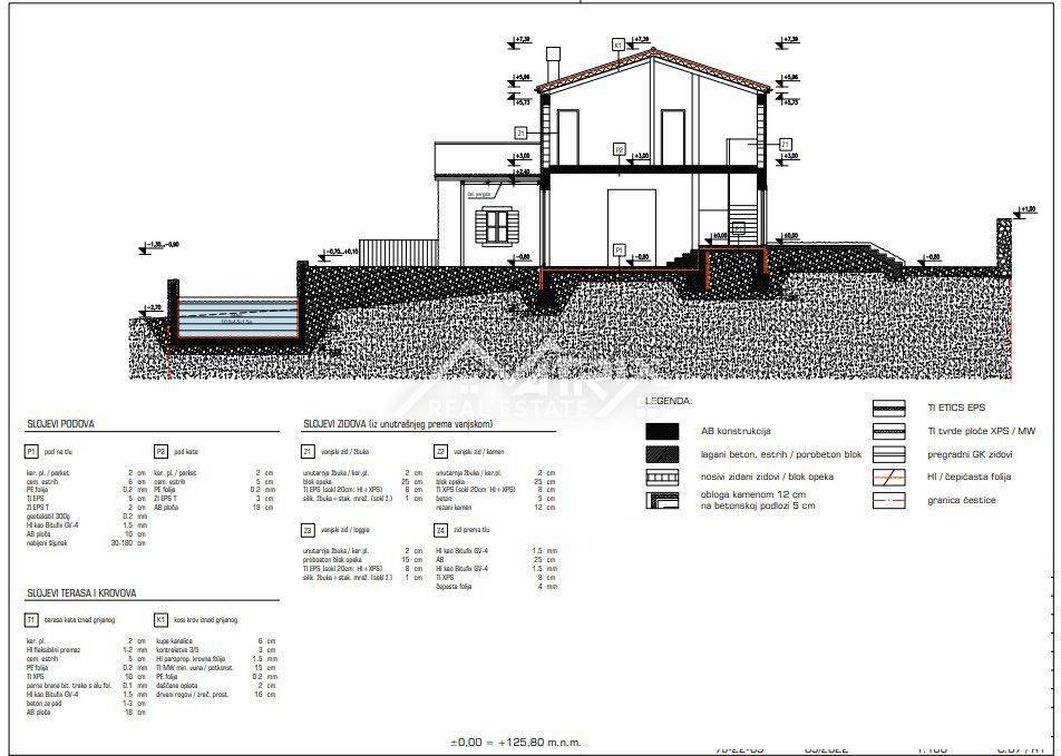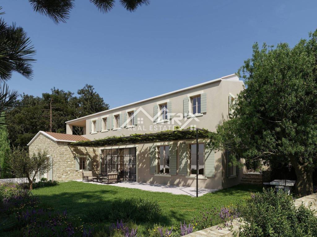 Ovaj fascinantan projekt predstavlja spoj suvremene arhitekture i autentičnih, starih kamenih temelja, stvarajući jedinstvenu atmosferu koja istovremeno odražava prošlost i sadašnjost. Smještena na idiličnoj parceli od 1010m2, ova moderna kuća savršeno je uklopljena u svoje okruženje, s ruševinama kamenih zgrada koje su pažljivo integrirane u funkcionalne dijelove doma.