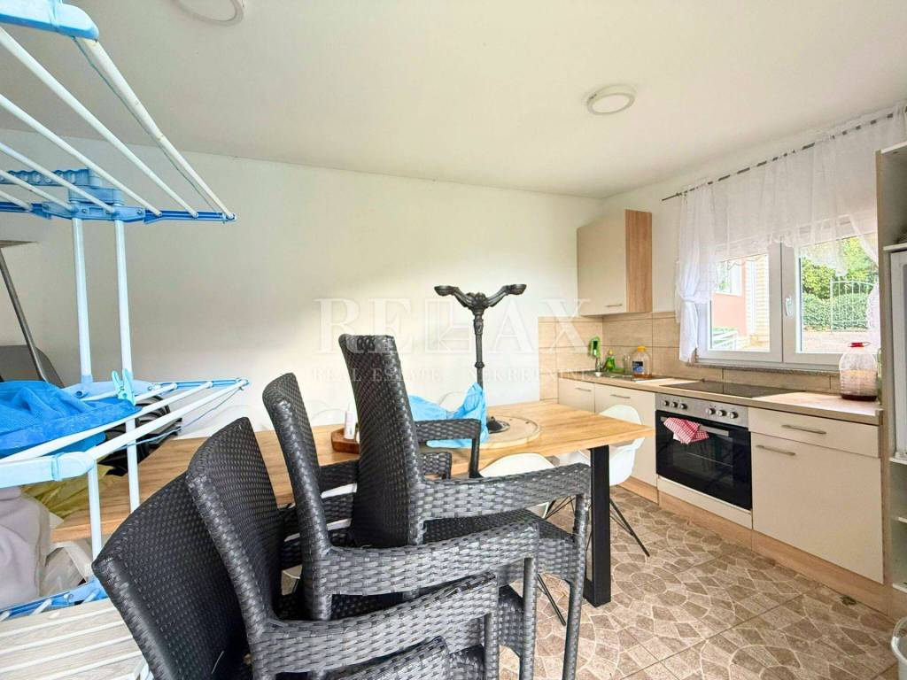 Uređena i održavana okućnica uključuje grijani bazen, savršen za uživanje tijekom toplijih mjeseci, te pomoćni objekt u kojem se nalazi ljetna kuhinja s prostorom za druženje i roštilj.