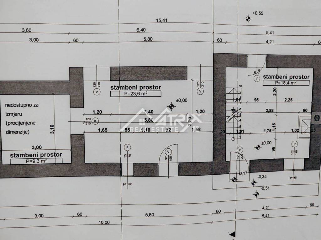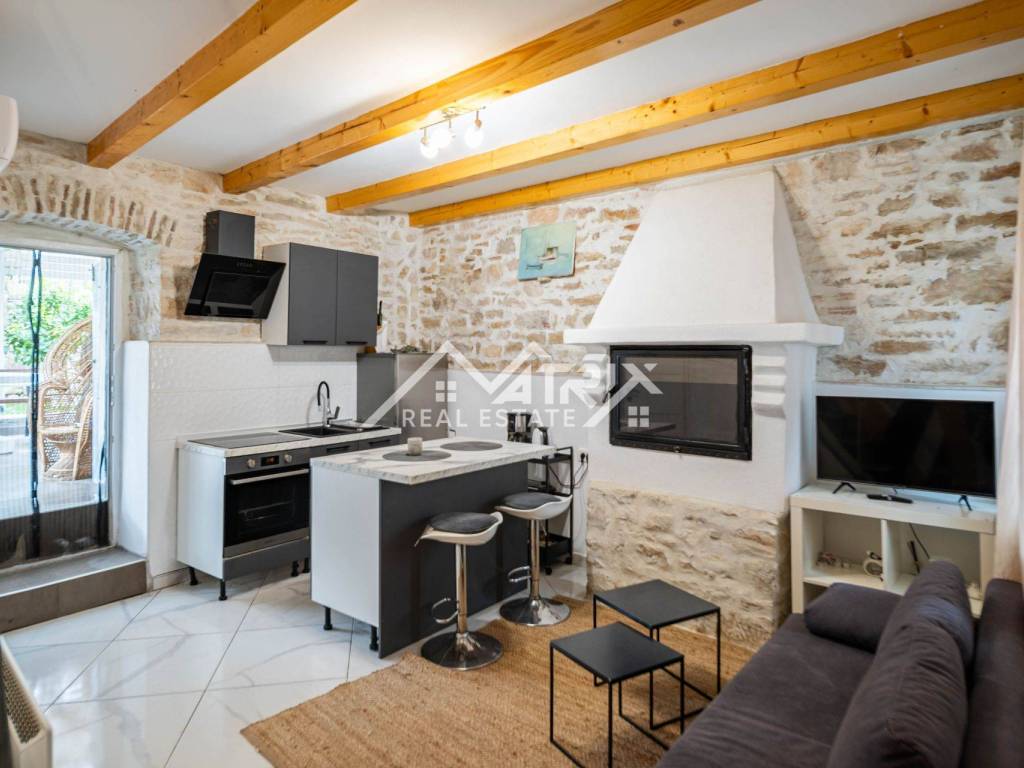 Nekretnina se sastoji od kuće i dvorišta površine 231 m². Kuća je kategorizirana i uspješno se iznajmljuje, s urednim papirima i čistim vlasništvom 1/1. U prizemlju se nalazi potpuno opremljena kuhinja sa dnevnim boravkom, WC i izlaz na terasu, dok se na katu nalaze spavaća soba i kupaonica. Potkrovlje je uređeno kao dodatni prostor koji se može koristiti kao spavaća soba ili lounge.