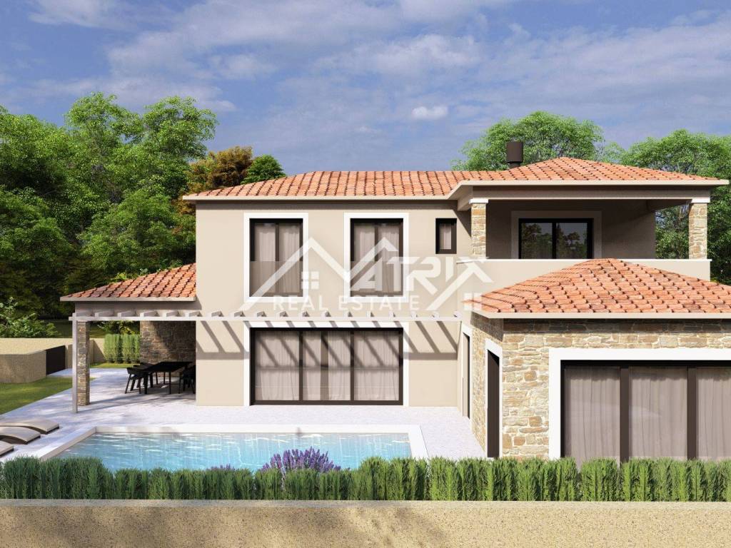 Poreč okolica, građevinsko zemljište s projektom za vilu s bazenom
