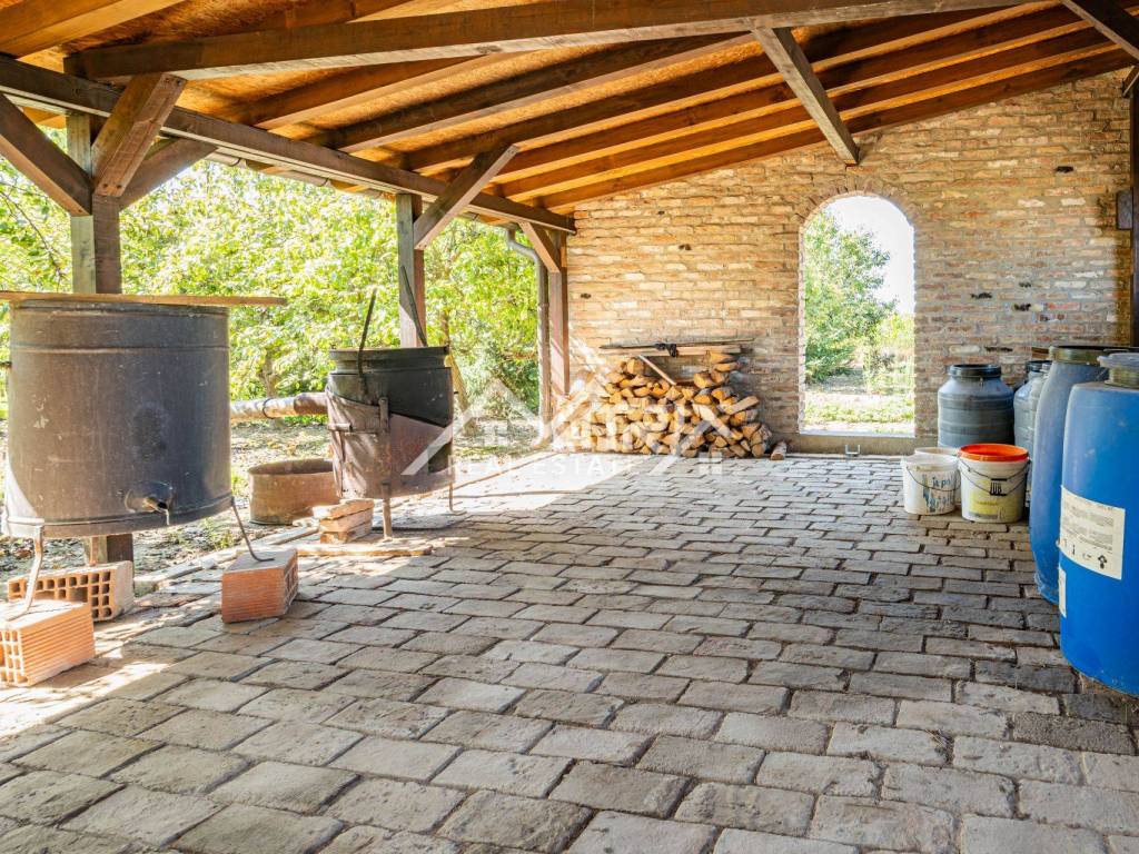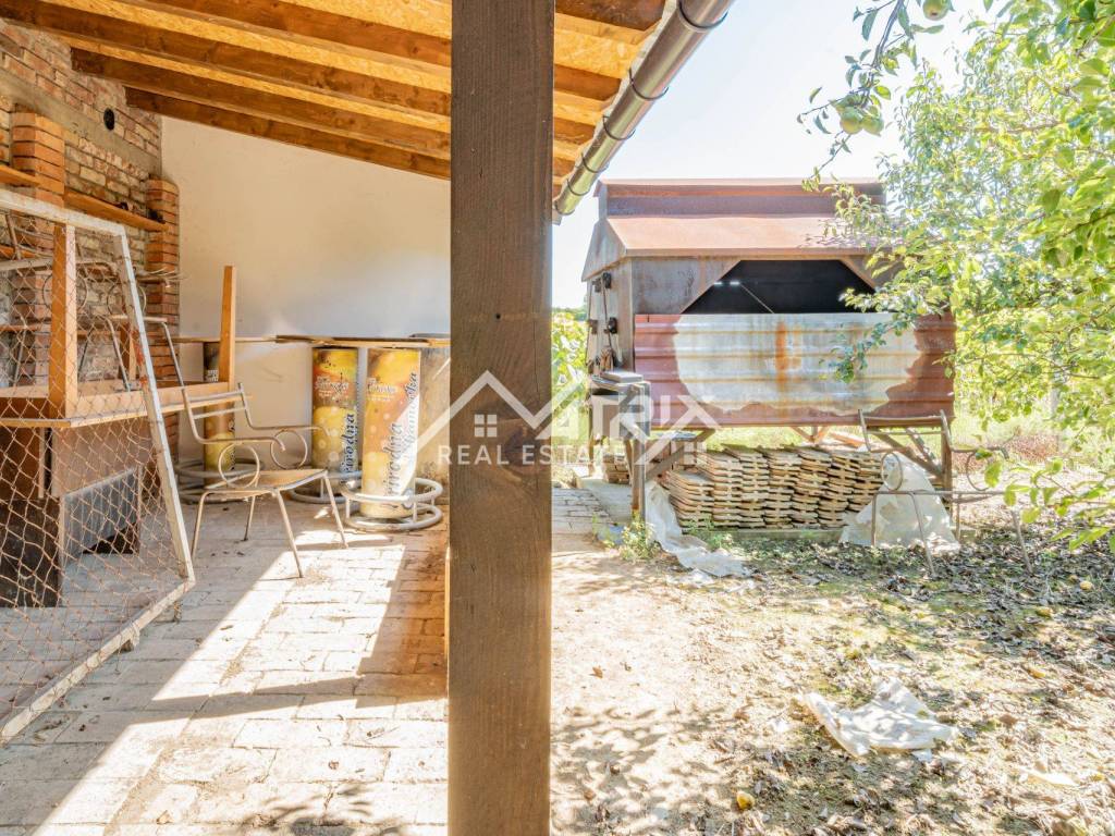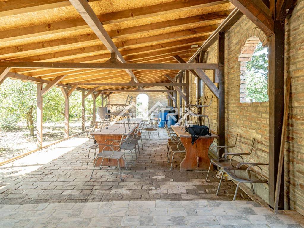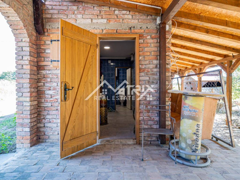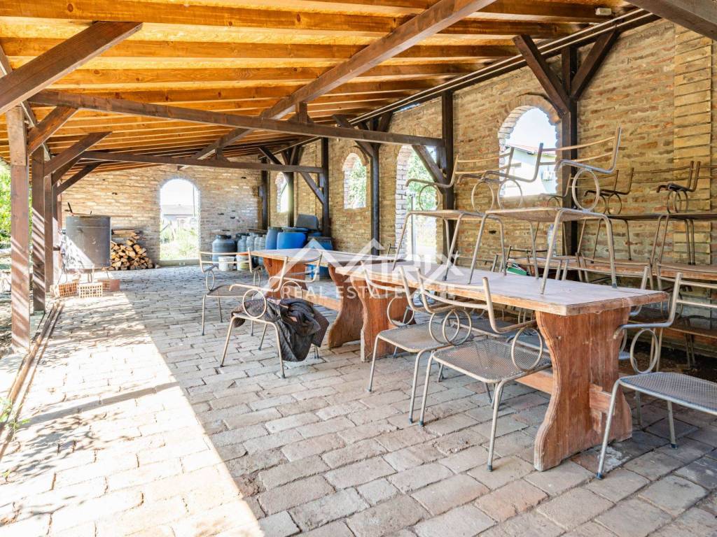 Na parceli se nalazi natkriveni prostor kapaciteta do 150 ljudi, zidanom kuhinjom i sanitarnim čvorom. Dodatni sadržaji uključuju pečenjaru za odojke, kazan i burad, čineći imanje potpuno opremljenim za ugostiteljsku djelatnost na otvorenom.