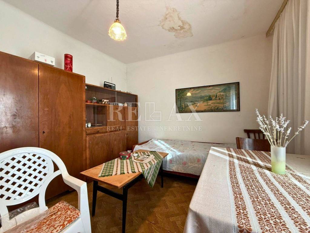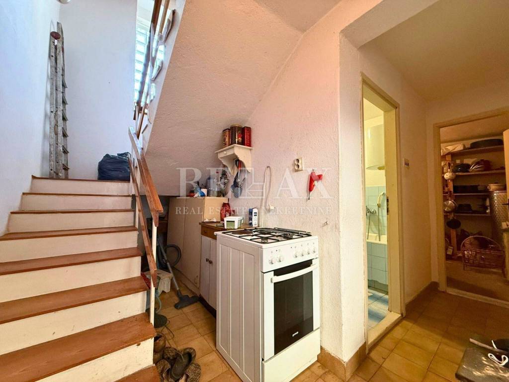 Nekretnina se sastoji od dva odvojena objekta. Glavna kuća, starina raspoređena na prizemlje i kat, zahtijeva renovaciju, no pruža čvrstu osnovu za adaptaciju u skladu s vlastitim željama. Njezina pozicija i raspored omogućuju formiranje do tri odvojene stambene jedinice, što ovu ponudu čini idealnom za višečlanu obitelj ili investitore.
