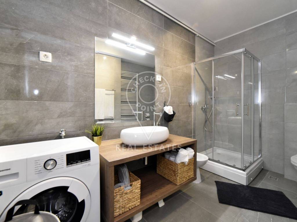 Najmoprimcu je na raspolaganju potpuno namještena kuhinja, perilica posuđa, mikrovalna pećnica, brzi wi-fi internet, klima uređaj, radni stol, perilica i sušilica rublja.