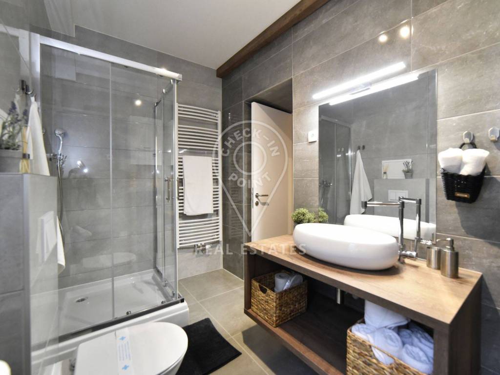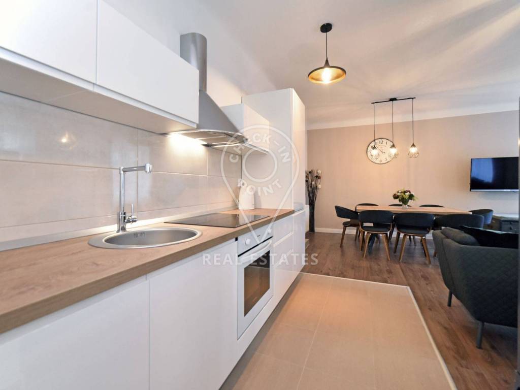 Stan se sastoji od 3 spavace sobe, 2 kupaonice, dnevne sobe te kuhinje i blagavaonice.