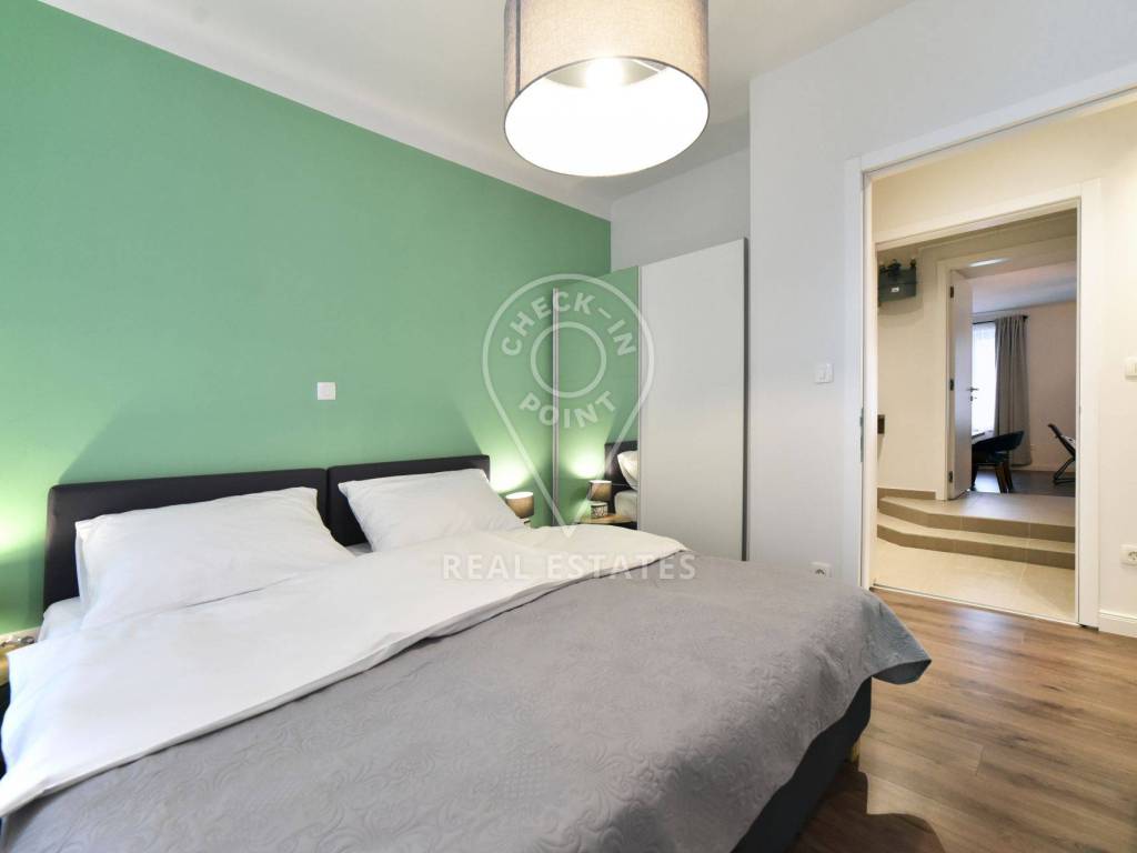 Moderan 4-soban apartman u Lopašićevoj ulici, u neposrednoj blizini Đamije i Martićeve ulice. Stan je potpuno namješten i opremljen svim potrebnim uređajima za duži boravak.