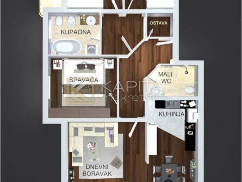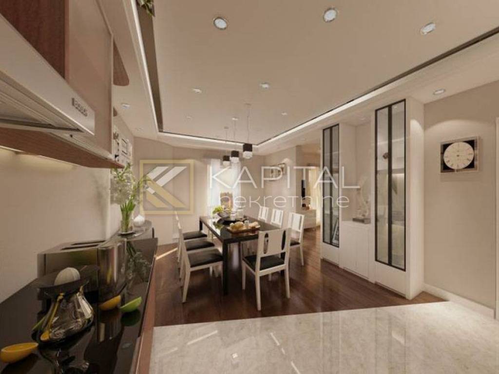 Prodajemo trosobni stan sa dnevnim boravkom na Marinićima, Stupari od 105.00 m2 s predivnim pogledom, plus spremište od 10,00 m2 i vlastito parkirno mjesto. Stan se sastoji od hodnika i predsoblja koji vode u 3 sobe od kojih jedna ima balkon. Iz hodnika se ulazi u kuhinju, blagavaonu te veliki dnevni boravak s prekrasnom osunčanom terasom od 11 m2 s koje se pruža pogled na cijeli Kvarner. Stambena zgrada ima 6 stanova, 2 stana po katu i smještena je na veoma mirnoj lokaciji. Podno grijanje s dizalicom topline - najnovije Panasonic tehnologije za grijanje i sanitarnu vodu. Hlađenje - sve sobe i dnevni boravak imaju ugrađene zidne ventilkonvektore Riello. Sanitarije - GEBERIT, HATRIA, NOVELLINI Sva ostala oprema kao i sama gradnja izvedena je od vrlo kvalitetnih materijala.