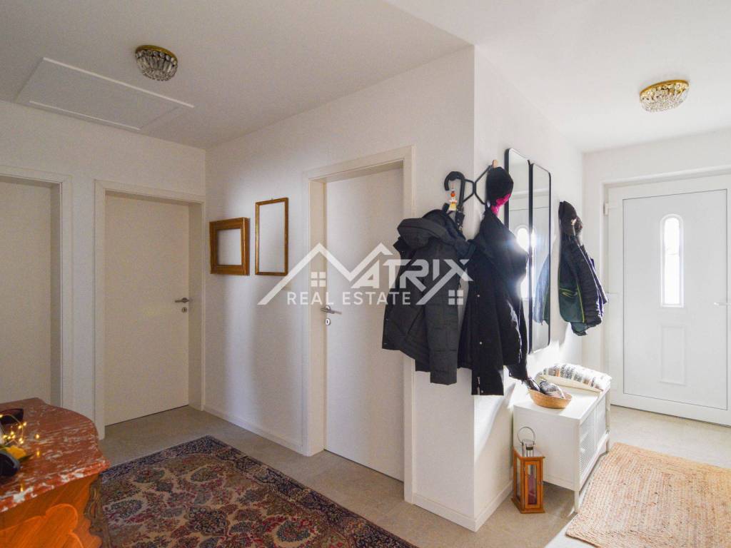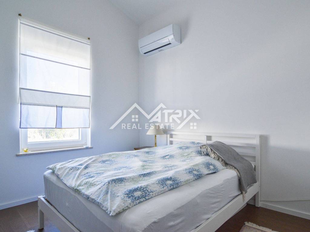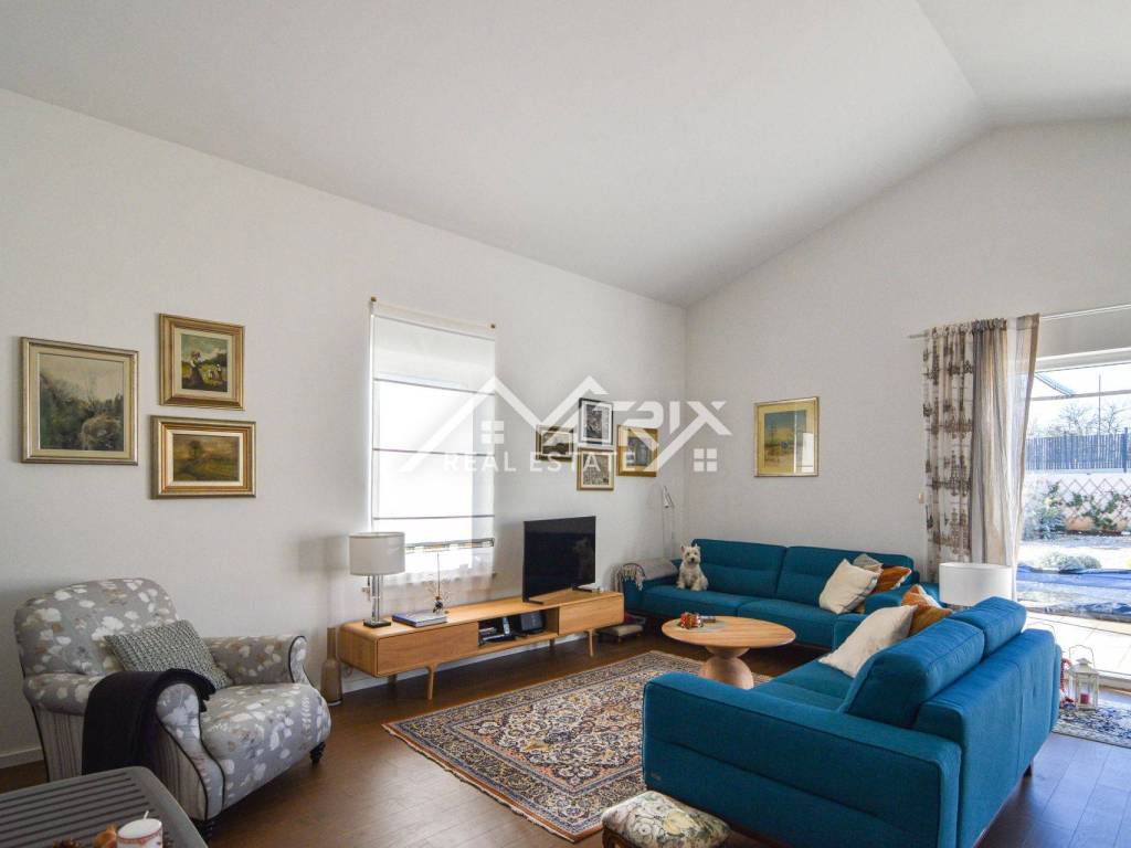 Nekretnina je građena od visokokvalitetnih građevinskih materijala i kvalitetnom izolacijom. Kuća je opremljena klima uređajima za grijanje i hlađenje, a kao dodatna opcija za grijanje u dnevnom boravku nalazi se peć na kruta goriva.