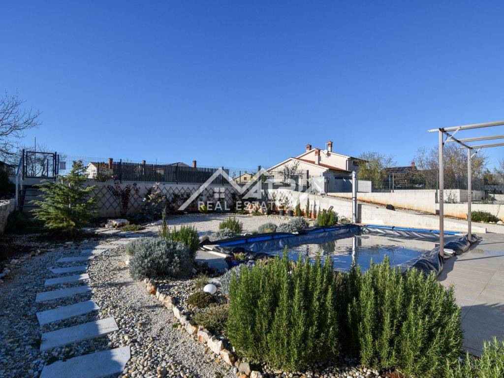 Na lijepo uređenoj prostranoj okućnici nalazi se bazen s prekrasnim sunčalištem za opuštanje i druženje. Kuća posjeduje i 2 vlastita parkirna mjesta u sklopu okućnice.