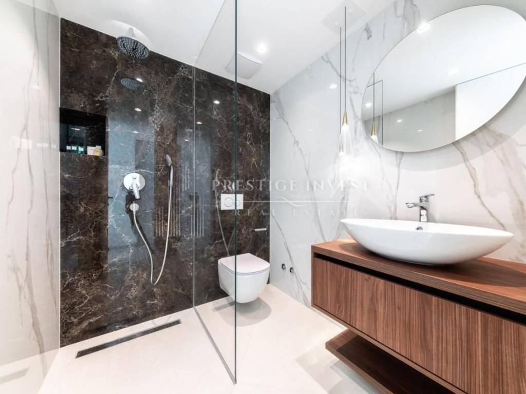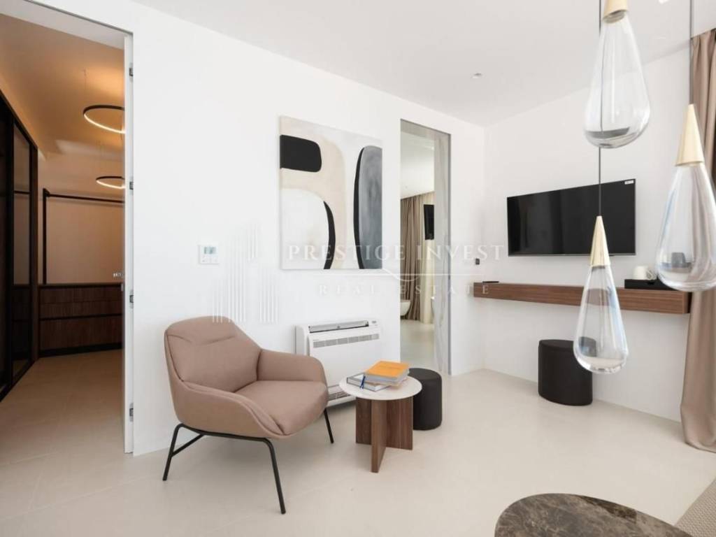 Interijer vile opremljen je luksuznim namještajem, pružajući visok stupanj udobnosti i elegancije. Eksterijer se sastoji od prekrasno uređene okućnice s vrtom, bazenom, jacuzzijem, saunom, sunčalištem te vanjskim šankom.