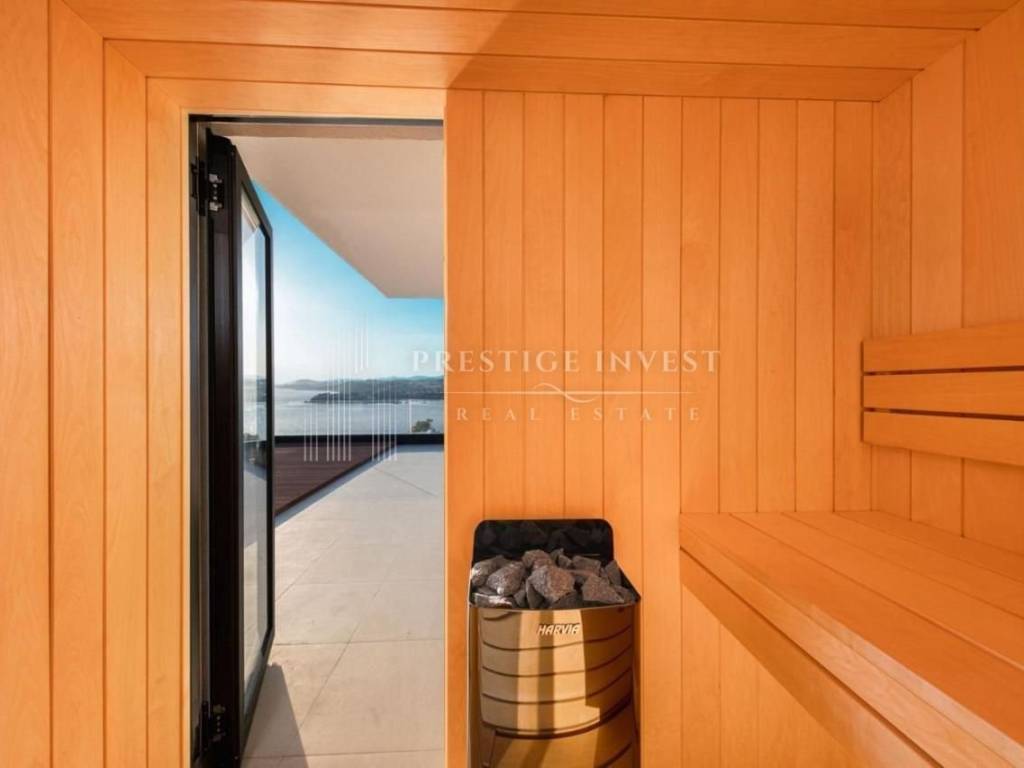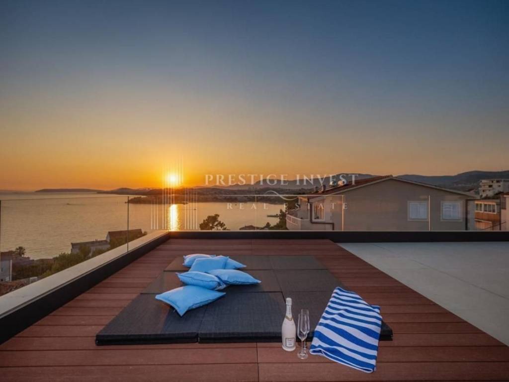 Ova jedinstvena nekretnina nudi ne samo udoban životni prostor već i spektakularne mogućnosti za uživanje i zabavu. Pogled na more i otoke s prostrane terase na drugom katu pruža savršen pogled.