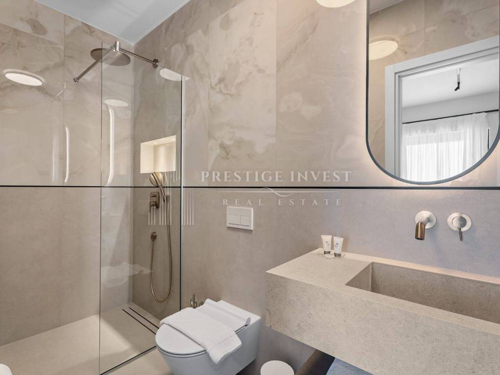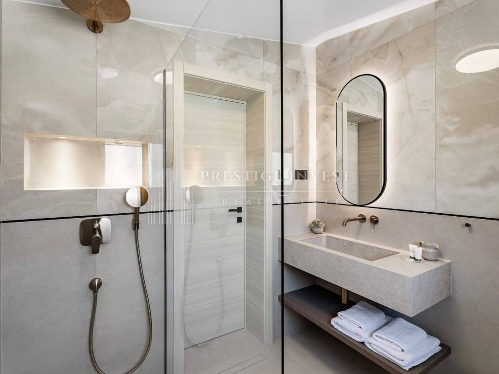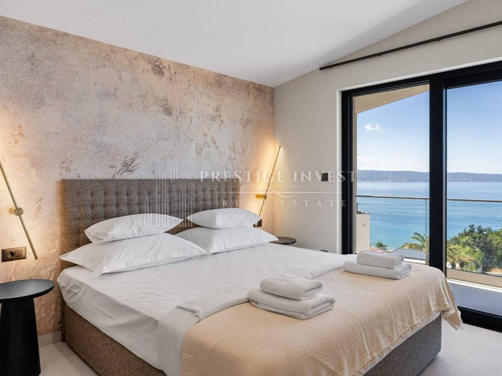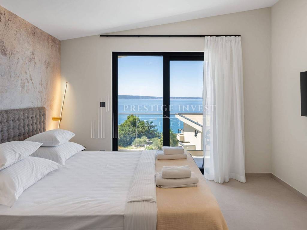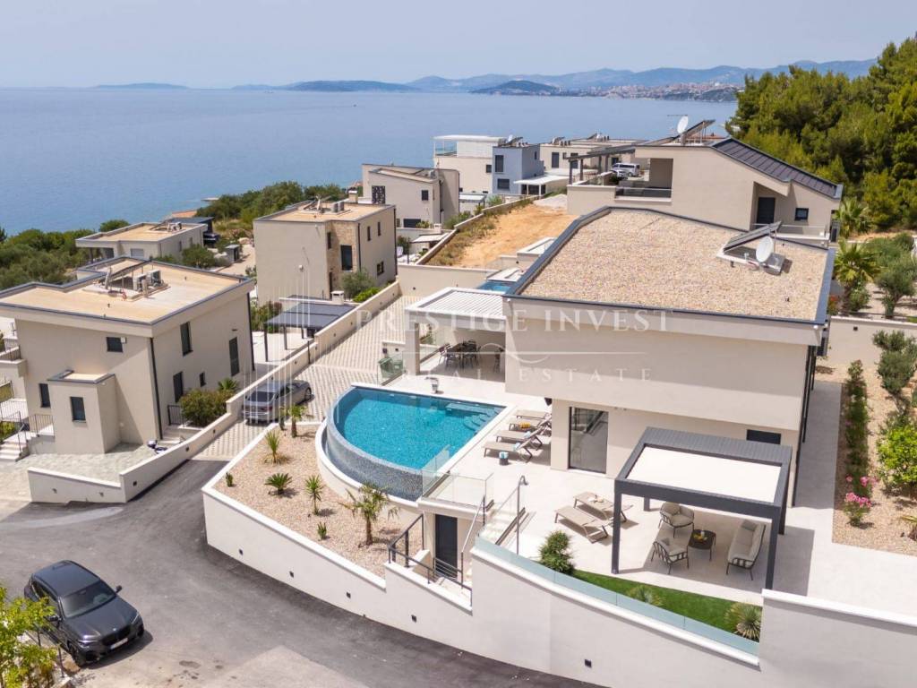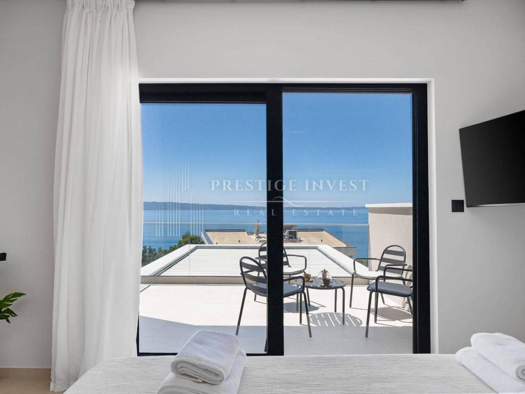 Bioklimatska pergola na terasi nudi dodatnu udobnost, dok ljetna kuhinja s roštiljem na plinom omogućuje uživanje u ukusnim obrocima na otvorenom. Pogled na more s terase dodaje dodatnu čar ovoj već spektakularnoj nekretnini.