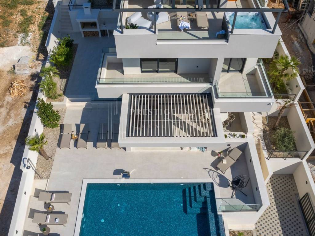 Villa Rossa ukupno sadrži 5 spavaćih soba od kojih svaka ima svoju vlastitu kupaonicu, jedan WC, te open space dnevni boravak smješten u prizemlju, koji je povezan s kuhinjom i blagovaonicom te ima direktan izlaz na terasu za opuštanje s bazenom s protustrujnim grijanjem, roštiljem i ležaljkama. Za dodatnu dozu relaksacije, na raspolaganju su sauna i jacuzzi na krovnoj terasi. Prirodno dnevno svjetlo obasjava svaki kutak ove vile, povezujući unutarnji prostor s vanjskim i stvarajući harmoniju između prirode i arhitekture.