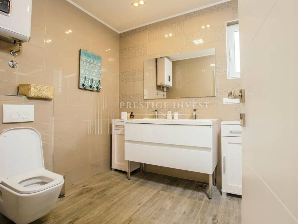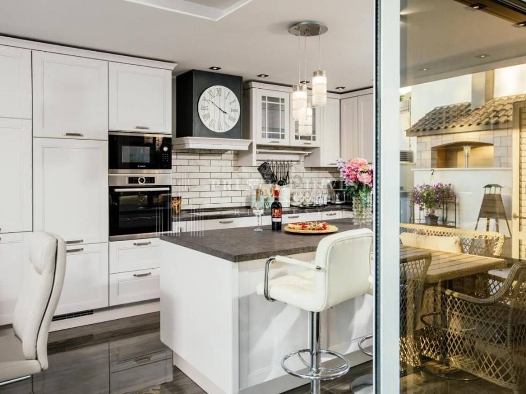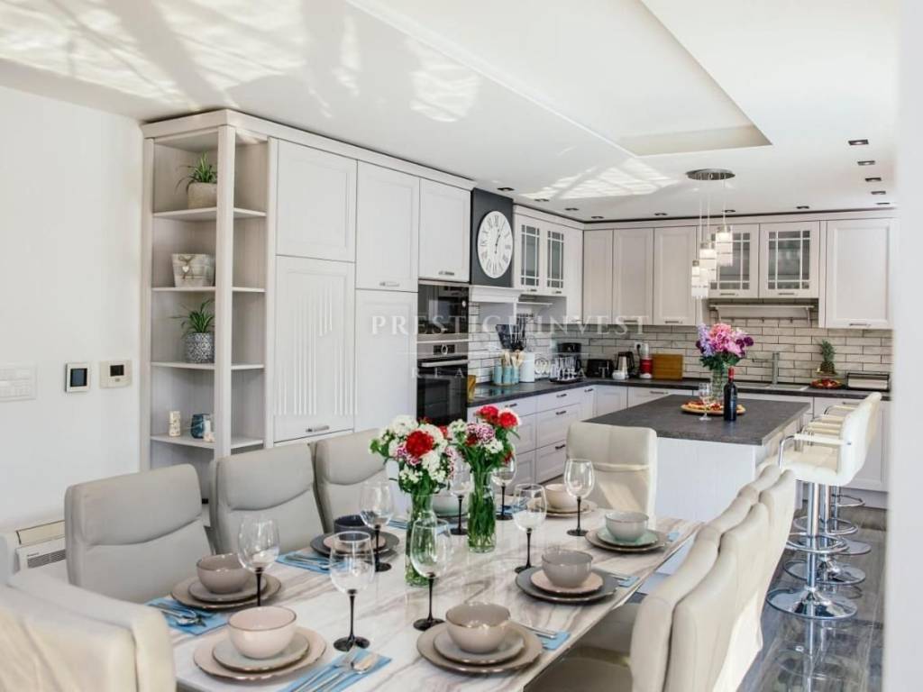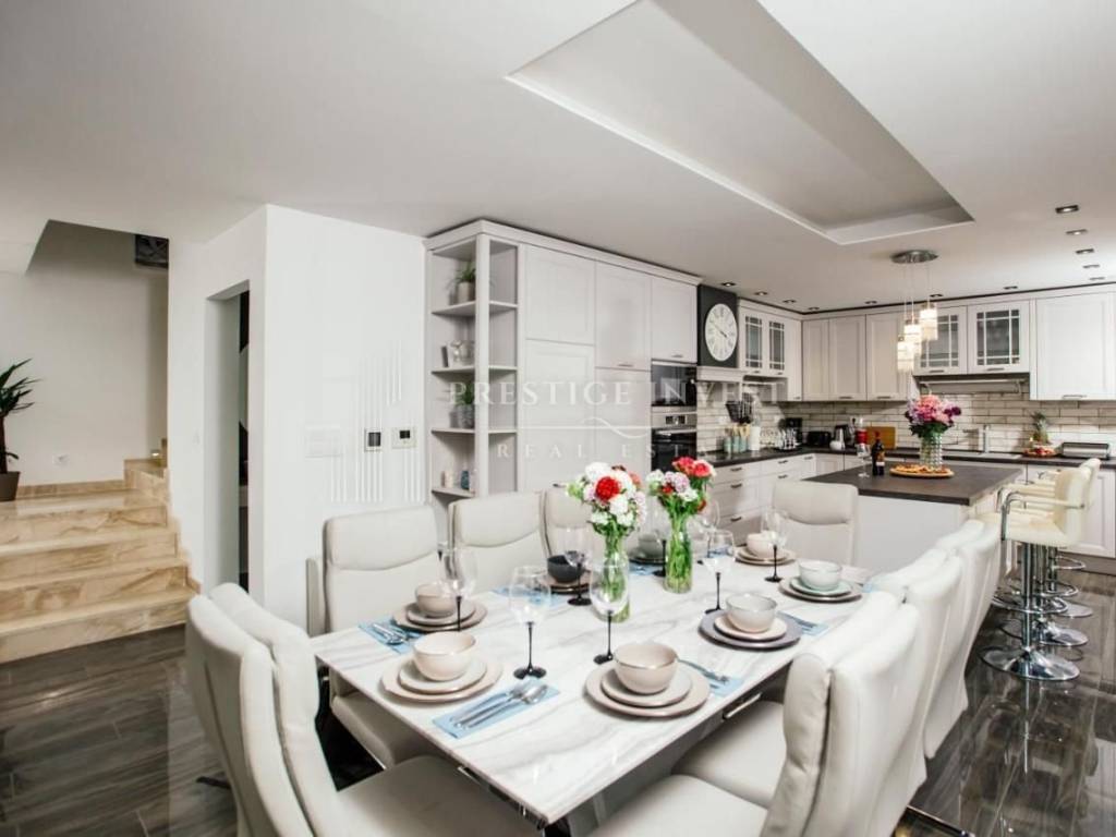 U samom prizemlju ove luksuzne nekretnine smješteni su prostrani dnevni boravak s potpuno opremljenom kuhinjom koje pružaju izlazak na terasu i dvorište s bazenom i ležaljkama koje vam nude oazu za odmor i mir. Uz to dodatno je smješten roštilj i prostor za objedovanje u vrtu. Moderan vrt pažljivo je izdizajniran i uređen mediterasnkim biljem te nadopunjuje osjećaj prirode. Vila se sastoji od četiri modern dizajnirane spavaće sobe i tri kupaonice s tuš kabinom.