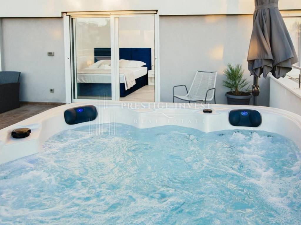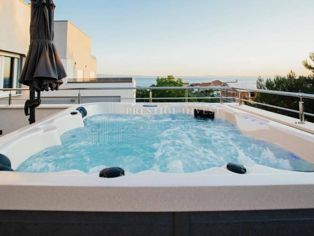 Ova luksuzna Vila moderno je opremljena s klimatiziranim prostorom uz WiFi, privatnim parkingom, jacuzzi-em na balkonu te teretanom koje sveukupno olakšavaju I upotpunjuju vaš boravak.