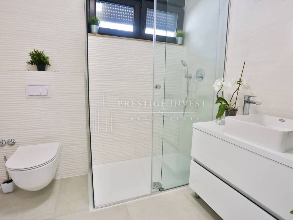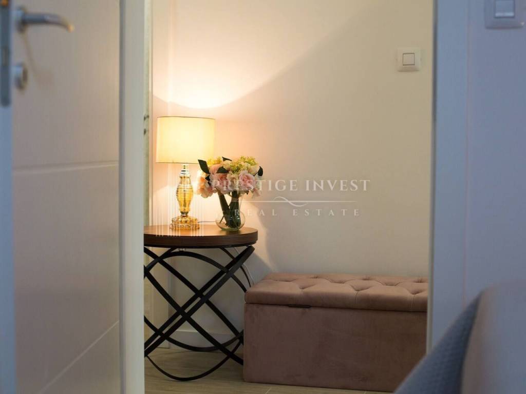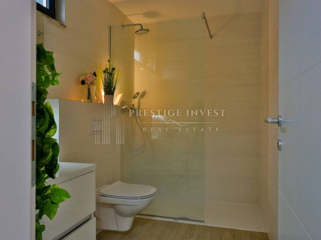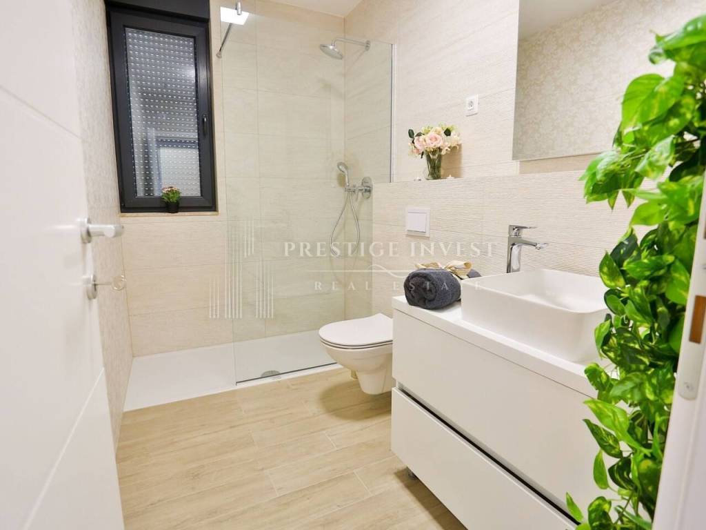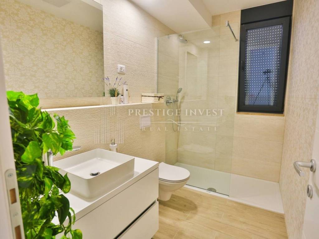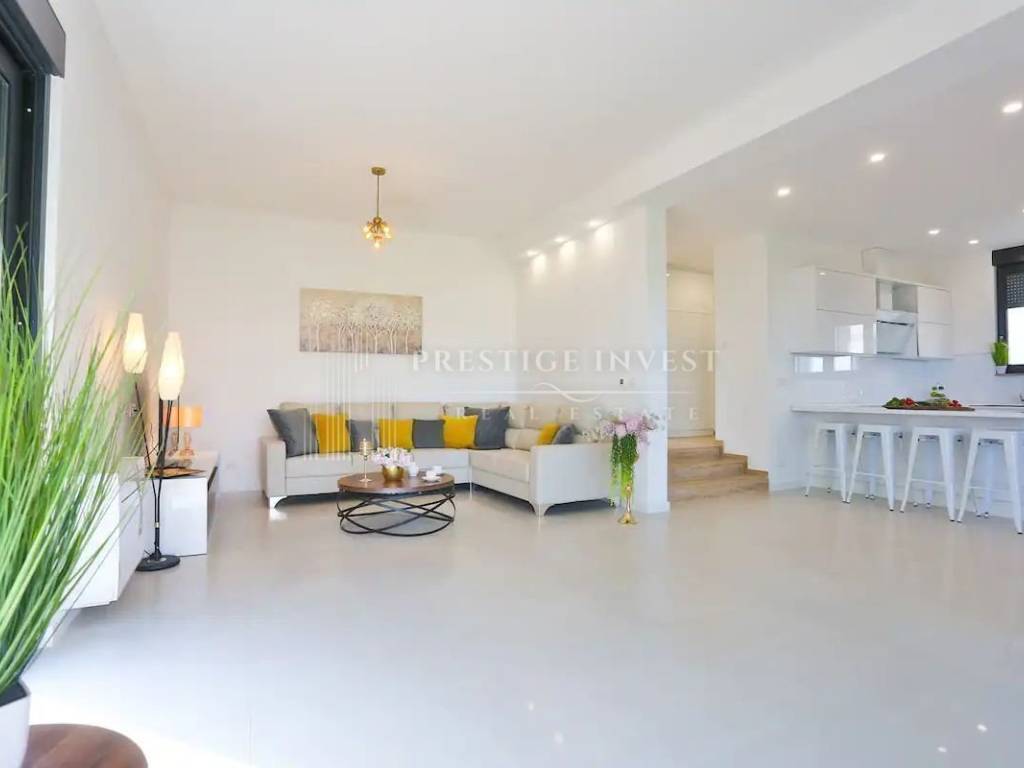 Na prvom katu je smješten dnevni prostor s velikom kuhinjom i blagovaonicom s izlazom na terasu s prekrasnim pogledom na more. Na drugom katu smještene su četiri spavaće sobe s vlastitim kupaonicama i svaka sa vlastitim pogledom na more. U svim sobama se nalazi klima i podno grijanje. Vila je opremljena dizajnerskim namještajem, rasvjetom i tepisima.