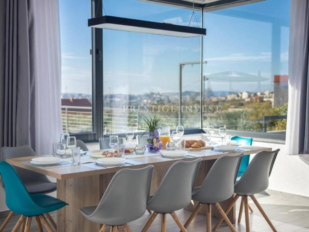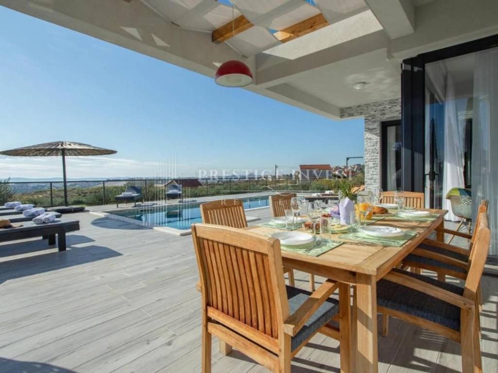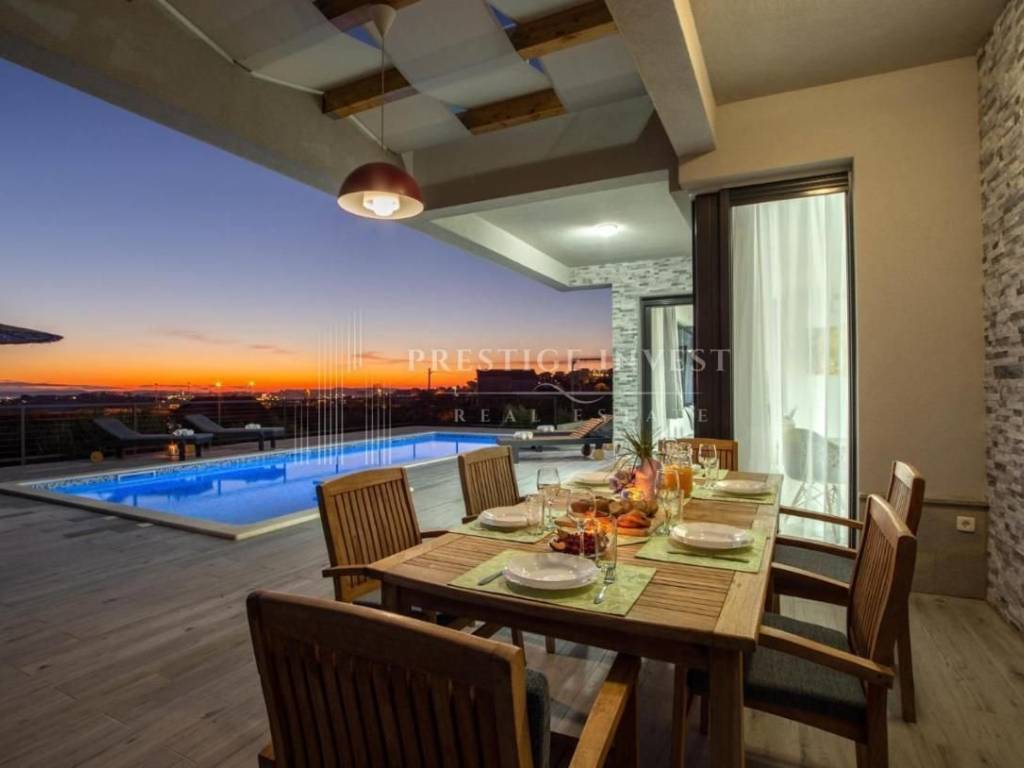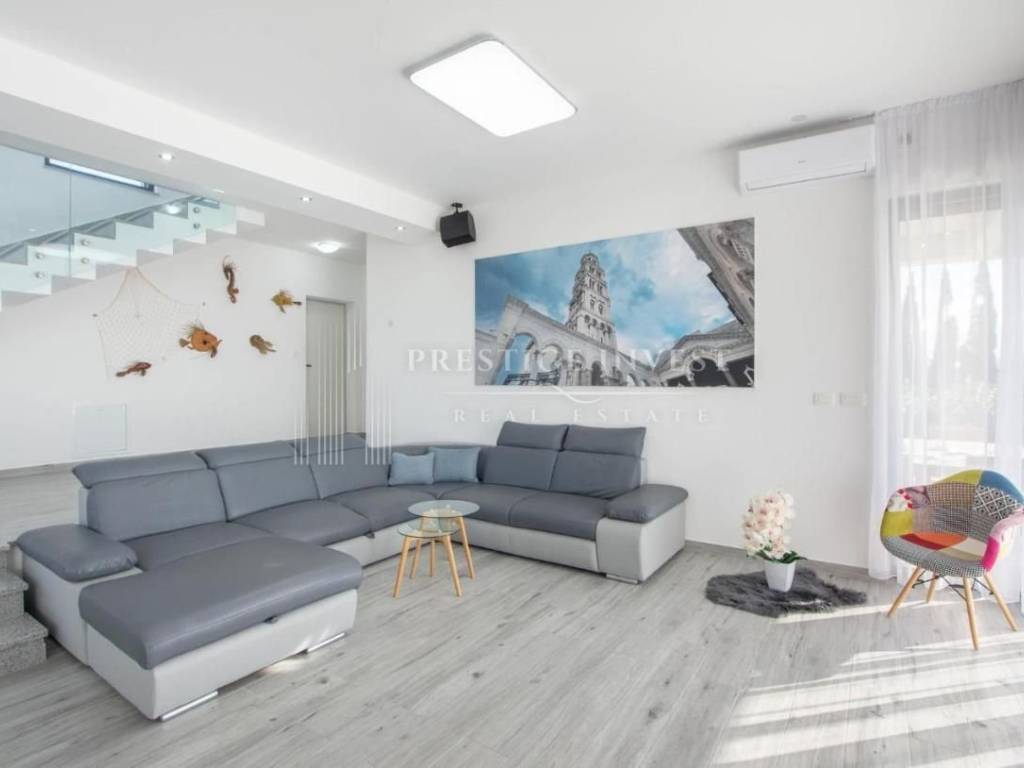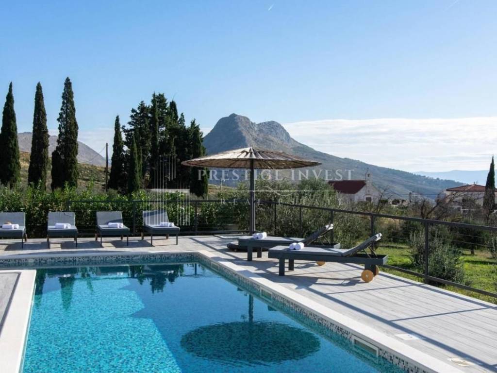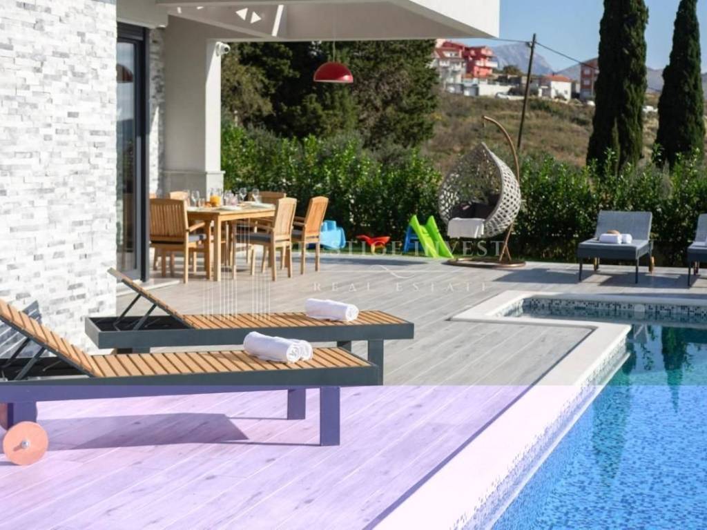 Posredujemo u prodaji luksuzne Vile s bazenom smještene u blizini Splita. Ova zapanjujuća nekretnina pruža prekrasan pogled na sami grad Split i okolicu. Vila se prostire na zemljištu površine 978m2, od kojih je 195m2 je stambenog prostora i 785 m2 vrta i okučnice s bazenom od 44m2. Vile se prostire na dvije etaže, prizemlje i prvi kat. Na prvom katu se nalazi dnevni boravak s blagovaonicom i izlazom na vrt s bazenom dok stepenice vode na gornju etažu sa sobama i kupaonicom.
