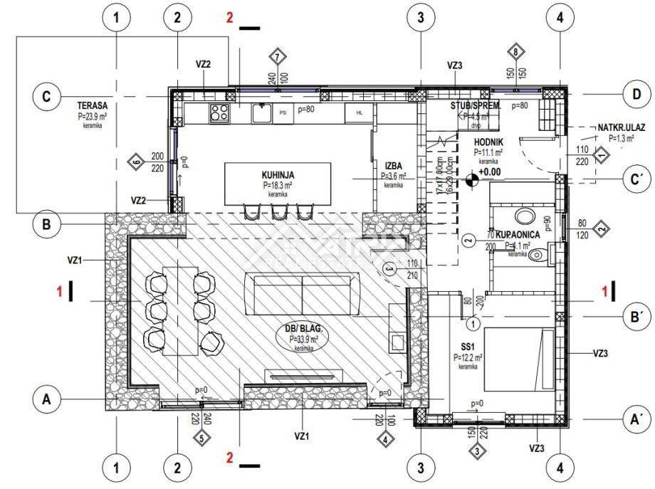 Kuća je trenutno u fazi izgradnje te će obuhvaćati prostrani dnevni boravak, blagovaonicu i kuhinju u open-space konceptu, uz dodatak jedne spavaće sobe i kupaonice u prizemlju. Unutarnje stubište će voditi na kat koji će imati dvije dodatne spavaće sobe i kupaonicu, čineći ovaj raspored savršenim za obitelji ili goste.
