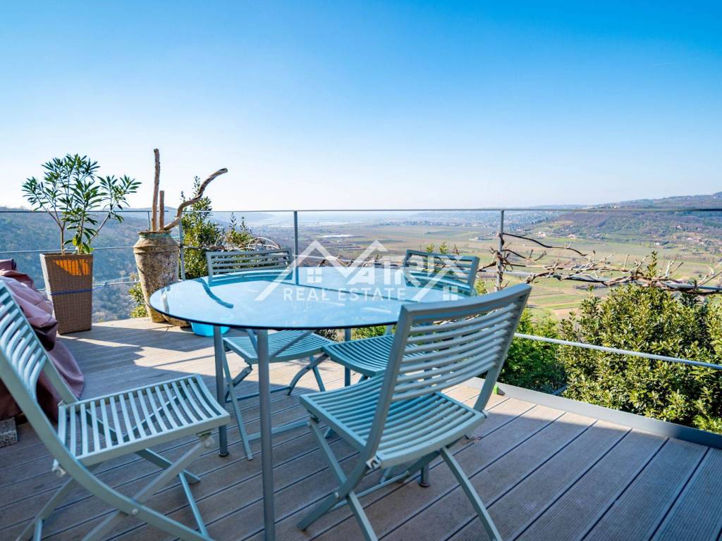 Na vrhu brežuljka, okružena mirisnom mediteranskom vegetacijom, smjestila se prekrasno renovirana stoljetna kamena kuća, pravo malo utočište mira i luksuza s očaravajućim pogledom na Jadransko more. Nalazi se u blizini Portoroža, tek desetak minuta vožnje od obale i portoroškog aerodroma, a s njenih terasa i prozora pruža se spektakularan pogled koji doseže sve do talijanskog grada Grado.