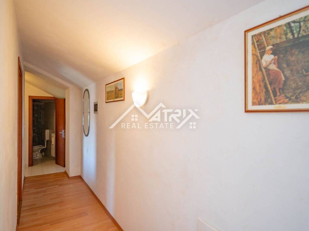 U prizemlju se nalazi prostrana konoba s kaminom, soba, kupaonica, spremište te garaža. Vanjskim stepenicama dolazi se do prvog kata na kojem su smješteni dnevni boravak, kuhinja s blagovaonicom, spavaća soba, kupaonica, hodnik i terasa s koje se pruža prekrasan pogled na more i okolnu prirodu.