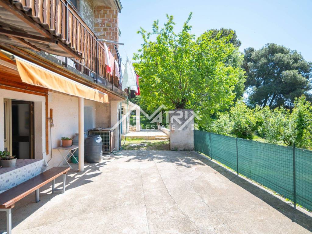 Okućnica površine 150 m² sastoji se od dvorišta s dodatnim parkirnim mjestima i lijepo uređenim vrtom. Postoji i mogućnost izgradnje bazena.