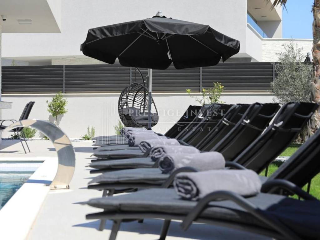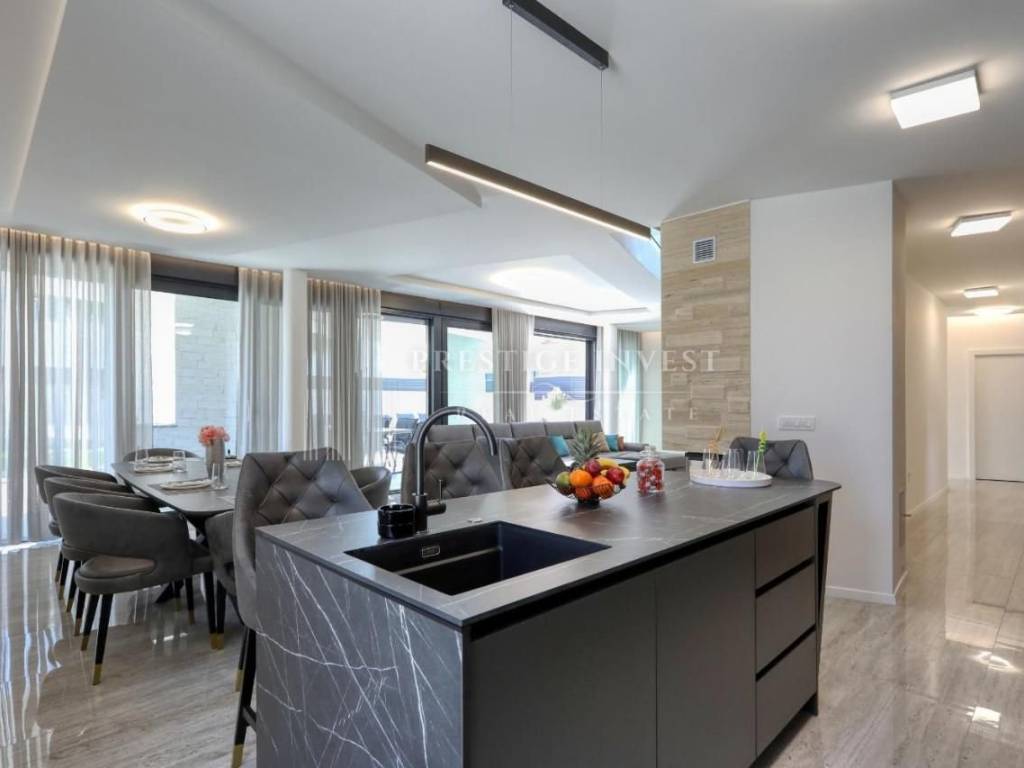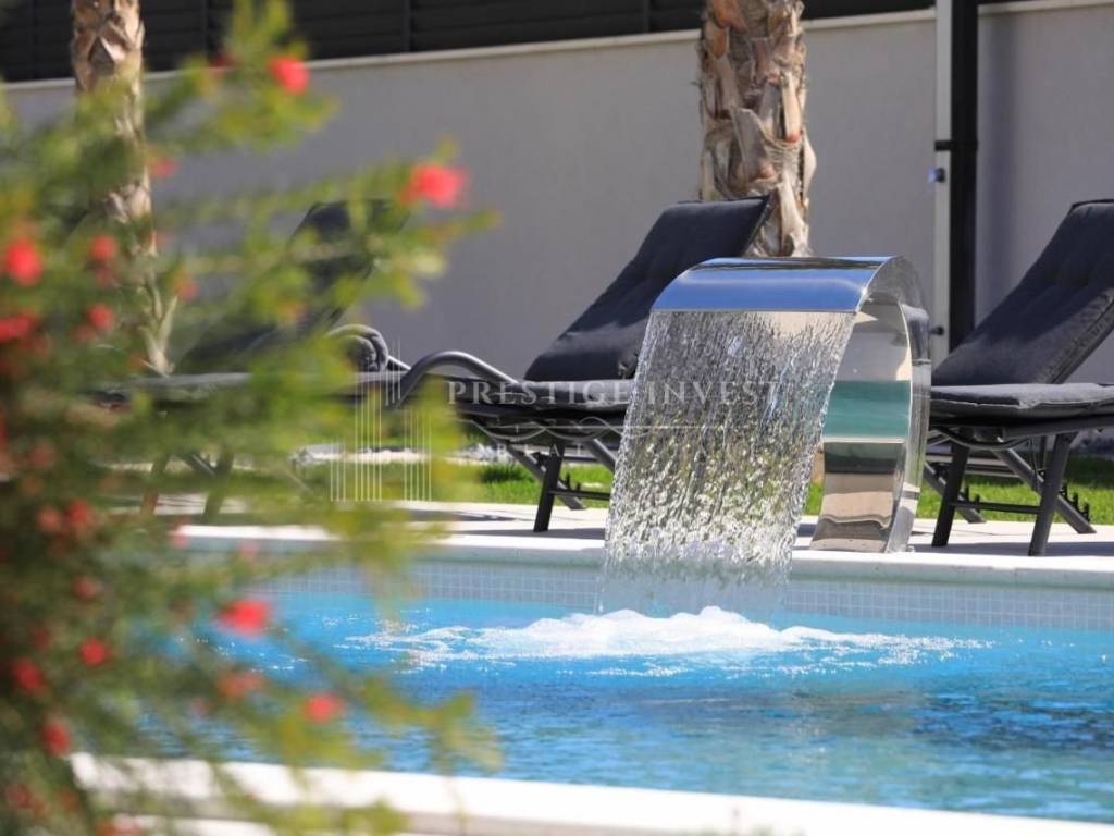 Prodaje se luksuzna vila s bazenom, smještena na prostranoj parceli od 756 m², u blizini prekrasnih plaža i čistog mora. Vila nudi neto stambenu površinu od 214 m², dizajnirana s visokokvalitetnim materijalima i luksuznim detaljima.