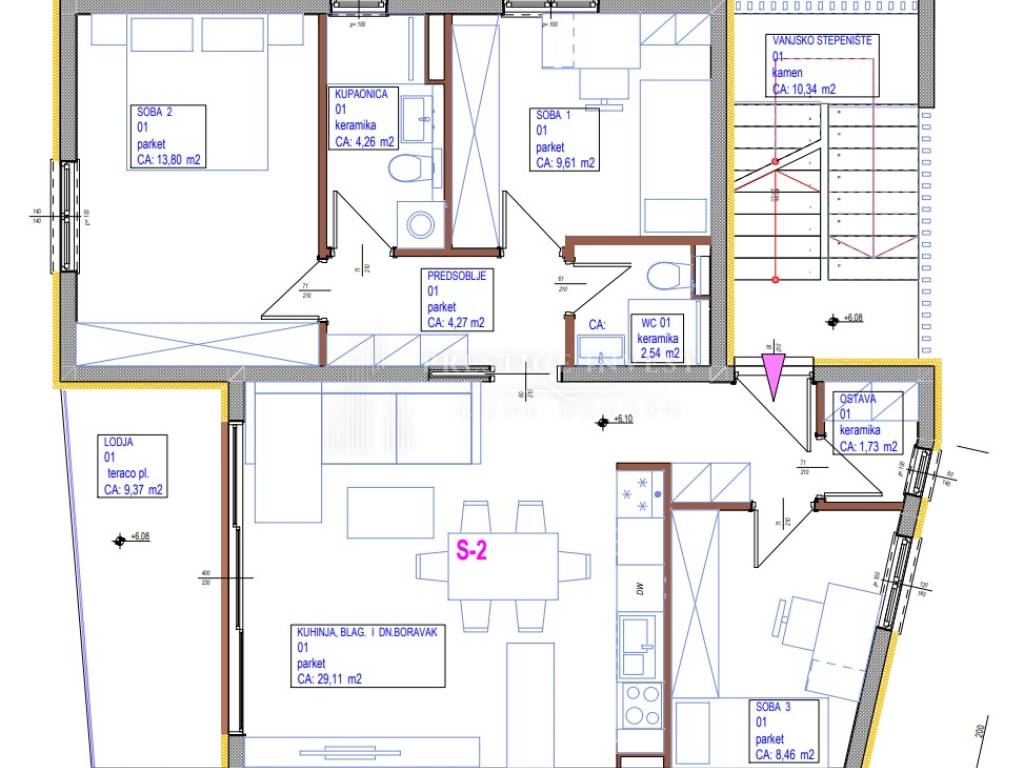 Zgrada ima ukupno 6 stambenih jedinica, sjeverne i južne orijentacije.
