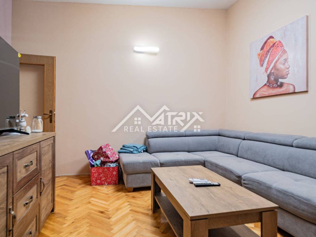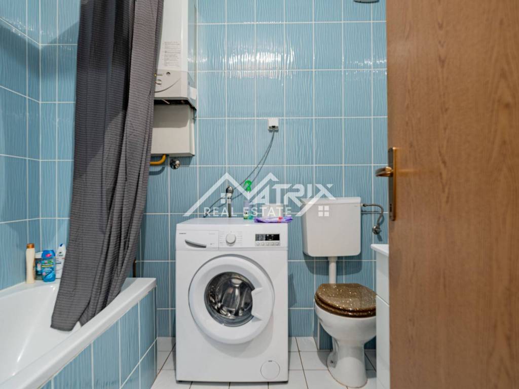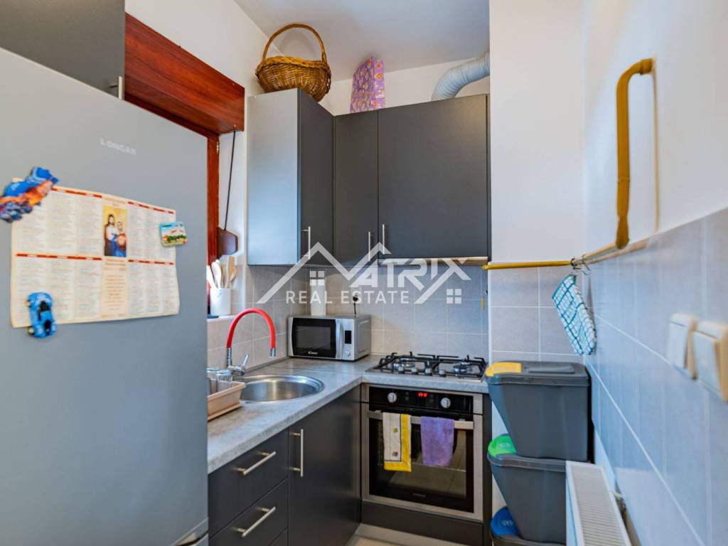 Stan se sastoji od hodnika, kupaonice s kadom i perilicom rublja, prostranog dnevnog boravka spojenog s blagovaonicom i kuhinjom, te jedne spavaće sobe s velikim ormarom. Zgrada ima termo fasadu, a stan je opremljen plinskim grijanjem putem kombi bojlera, što omogućuje niske režije koje su dodatno olakšane činjenicom da su svi potrošači odvojeni. Sigurnost je dodatno naglašena protuprovalnim vratima.
