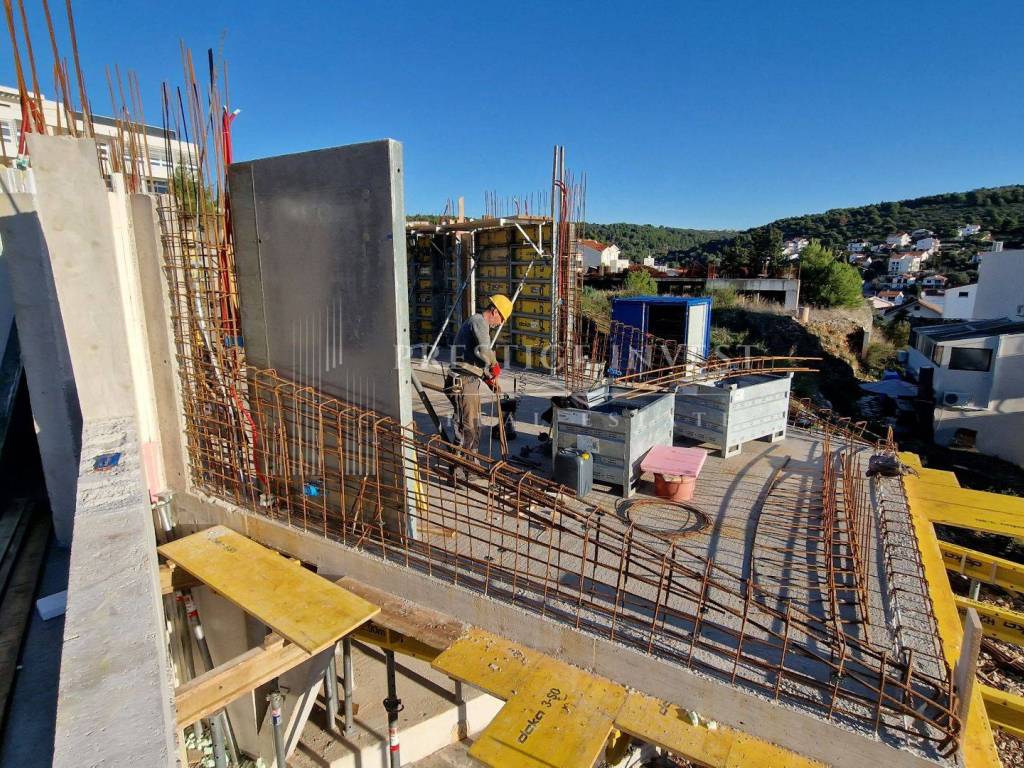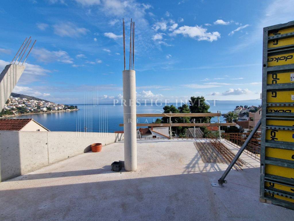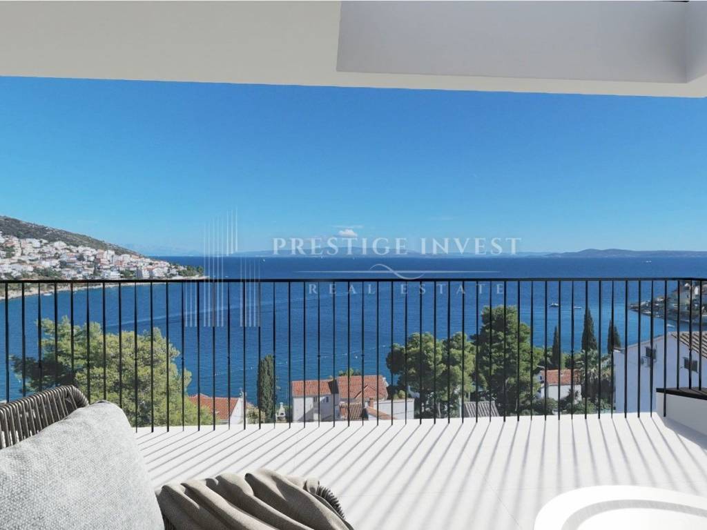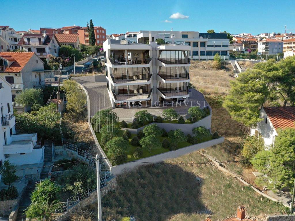 Prodaje se stan na prvoj etaži zgrade ukupne stambene površine sa svim pripacima 84.35 m2, ekskluzivna lokacija u Okrug Gornji samo 90 metara od plaže, s prekrasnim pogledom na Brač, Šoltu i Hvar. Zgrada je smještena na mirnoj lokaciji.