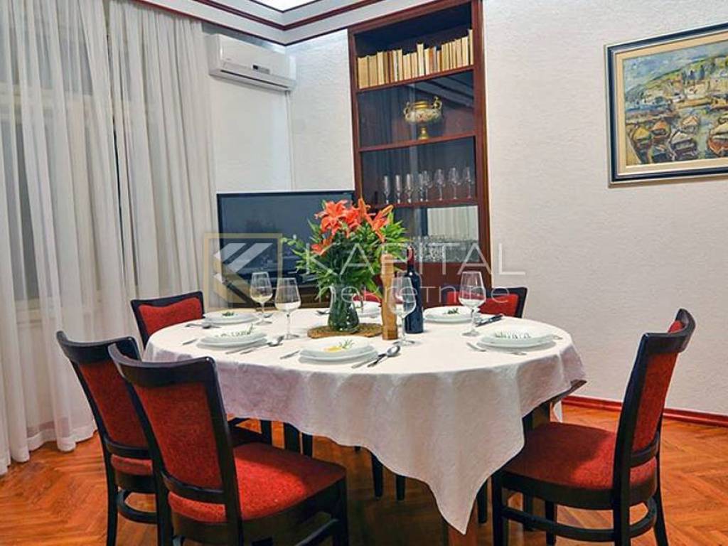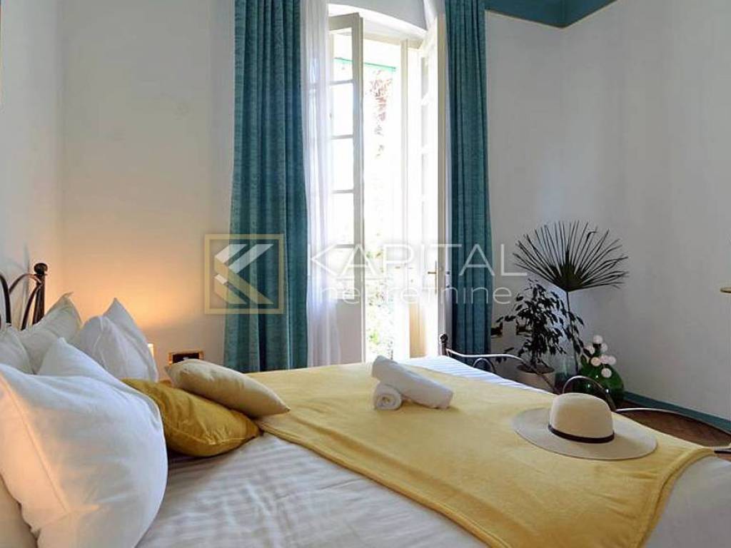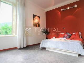 U mirnom centru Opatije u lijepoj vili s 2 stana nalazi se ova jedinstvena nekretnina. Posebni ulaz u stan koji u prizemlju ima veliki hol, kuhinju spojenu s blagovaonicom, dnevni boravak, wc, kupaonicu, praonicu te prostrano unutarnje stubište. Na 1. katu su četiri sobe i balkoni. Izpred stana se nalazi okućnica od 130 m2 u vlasništvu gdje su parkirna mjesta,velika terasa sa sjenicom i sunčalištem. U stražnjem dijelu kuće je kotlovnica i spremišta. Ovo je komfor kuće, u mirnom djelu, nadomak plaže i svih zbivanja. Obzirom na idealnu lokaciju nekretnina isplaticva i za najm! Za sve informacije nazovite 098/257-020