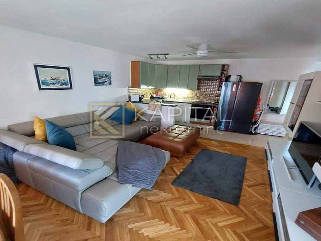 Prodaje se lijep, adaptiran stan od 47 m2 na samo 300 m od plaže. Stan se nalazi na 3. katu kvalitetne, novije zgrade okružene zelenilom u čijoj se neposrednoj blizini nalazi besplatan parking i dućan. Stan se sastoji od ulaznog dijela, kuhinje/ dnevnog boravka/ blagavaone, spavaće sobe, kupaone i logge. PVC stolarija, protuprovalna vrata, nove aluminijske rolete, kompletno promjenjenih instalacija vode i struje. Opremljen klima uređajem, novim stropnim ventilatorima, kao i novim kuhinjskim uređajima ( indukcija, perilica za suđe, veliki američki, hladnjak, pećnica ). Stanu pripada i vlastito spremište u suterenu zgrade od 1,54 m2 - također renovirano. Za sve informacije nazovite +385 99/2196-354