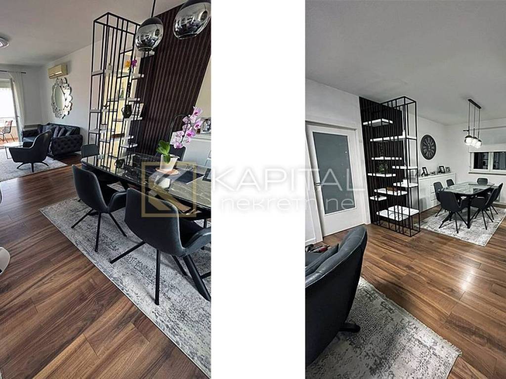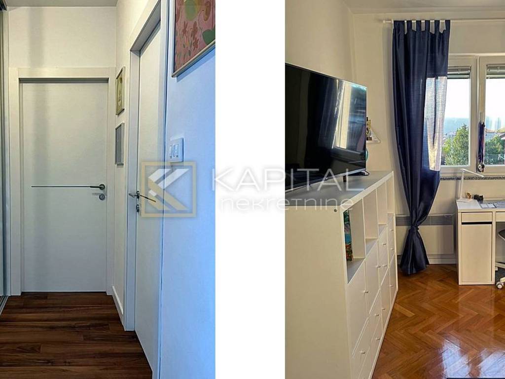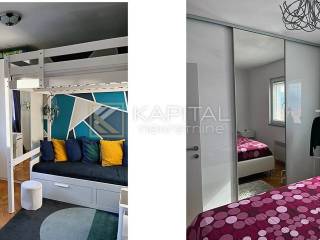Prodaje se moderan stan s pogledom na more. Stan se sastoji od dnevnog boravka, kuhinje/blagavaone, kupaone i zasebnog WC-a, tri spavaće sobe, balkona ukupne površine 91 m2, te drvarnice od 6 m2. Stan se prodaje kompletno namješten. Pripadaju mu i dva parkirna mjesta ispred zgrade. Grijanje je riješeno radijatorima na struju i klimom, te ima i optički internet. Vlasništvo je uredno i bez tereta! Za sve informacije nazovite +385 99/2196-354
