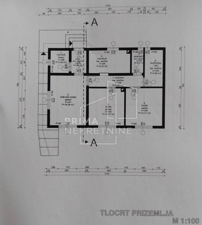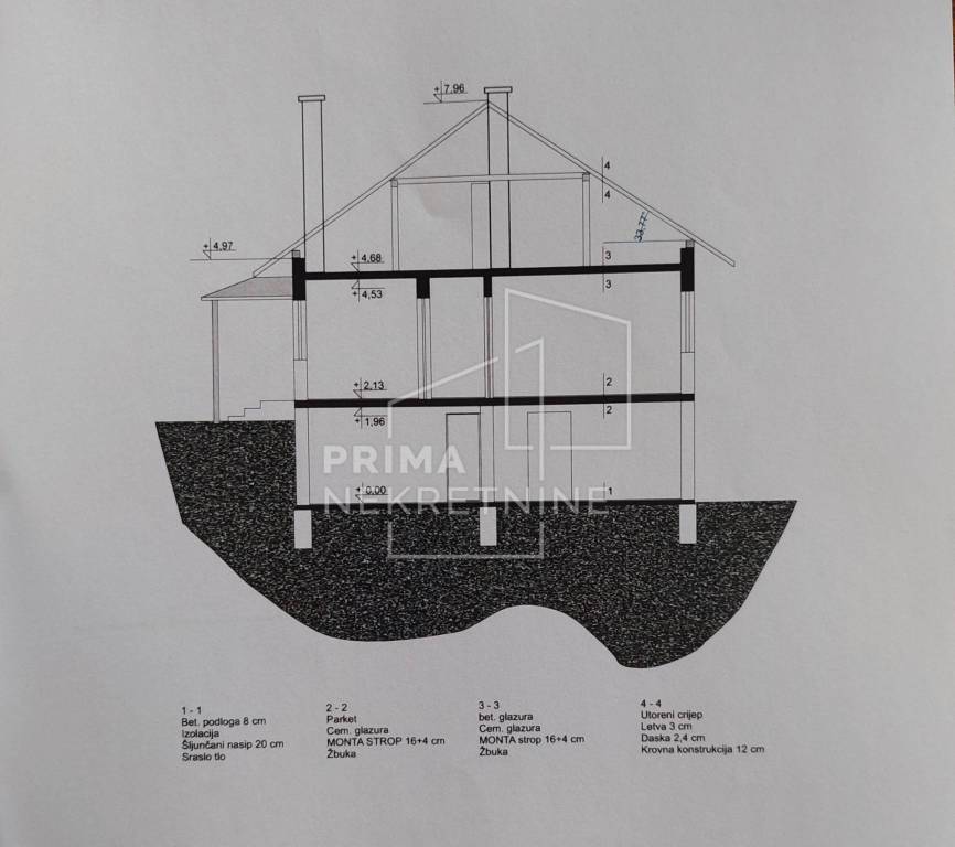 U ponudi je kuća tlocrtne površine 85 m2 na parceli površine 1249 m2.
