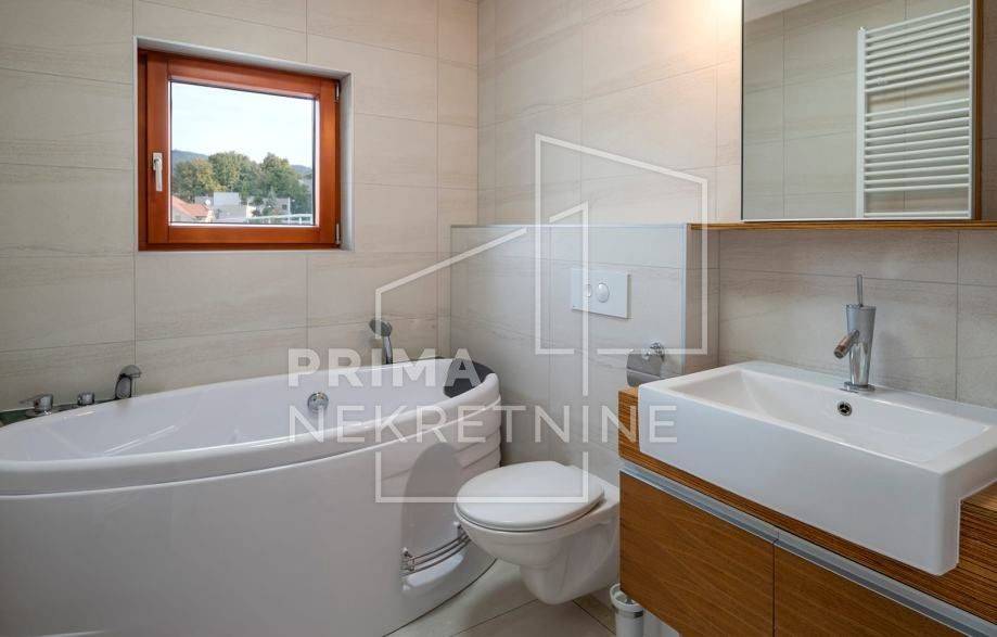 Stan je opremljen drvo-aluminijskom stolarijom s električno pokretanim roletama, alarmom, video portafonom, hidromasažnom kadom.
